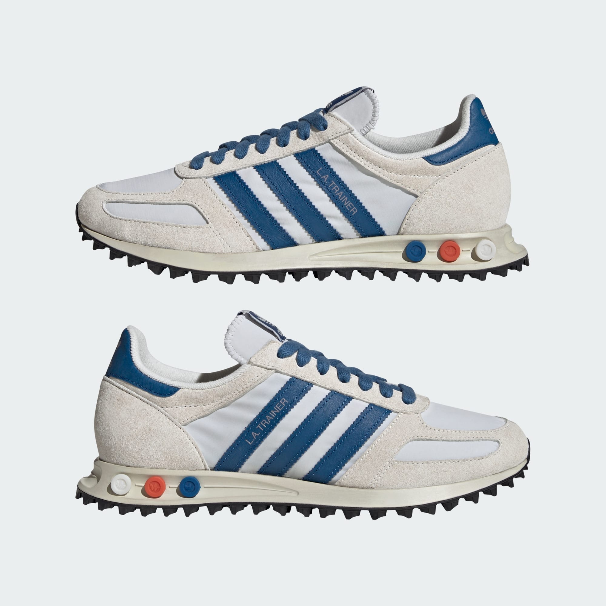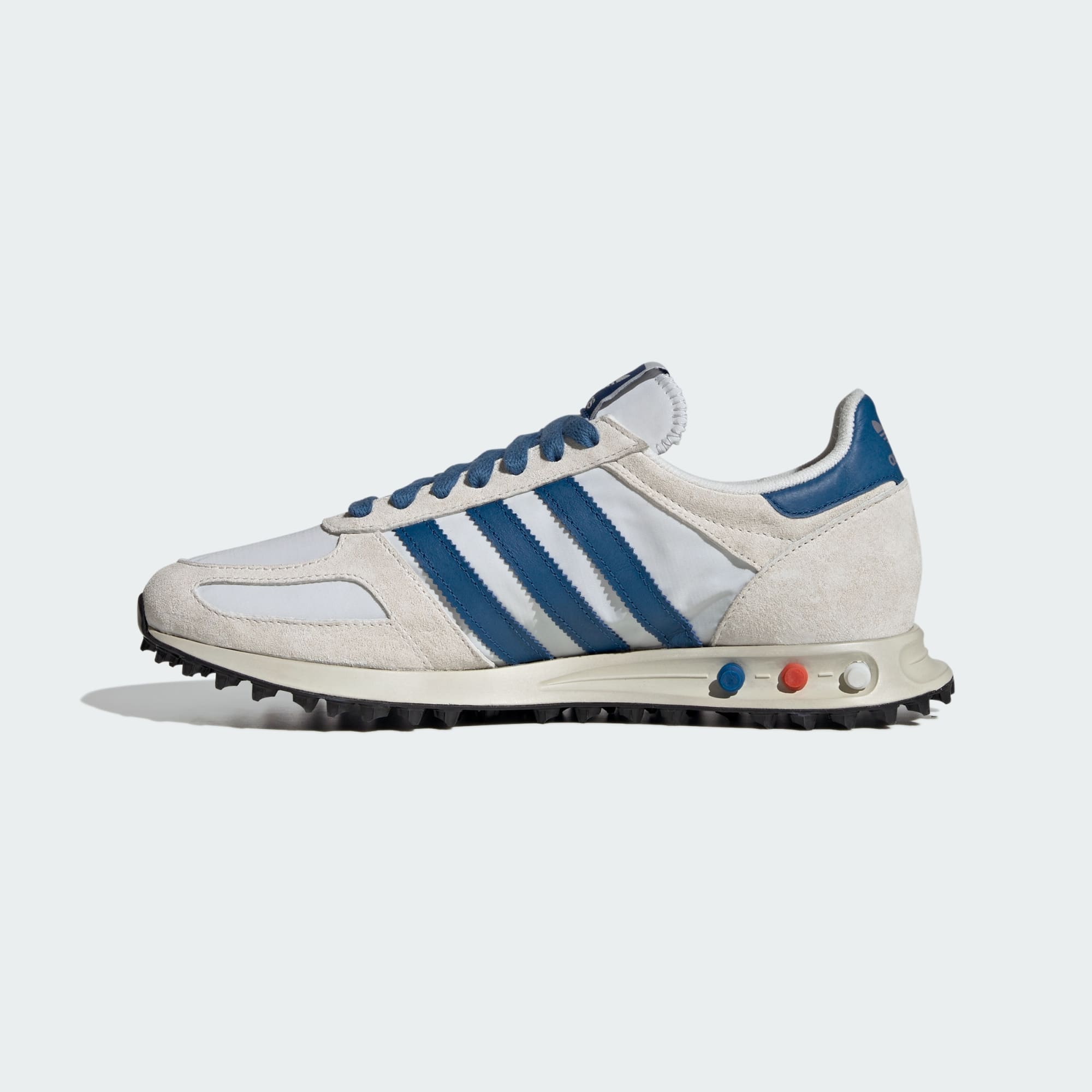 LA TRAINER OG-skorna är utformade för livsstilsentusiaster. De har tandade 3-Stripes i mitten och på sidorna, samt en adidas-logga med Trefoil på hälfliken. Den slitstarka gummiyttersulan garanterar slitstyrka och ett bra grepp, vilket gör dem perfekta för vardagsbruk. Snöra på dig LA TRAINER OG-skorna från adidas och kliv in i en värld där stil kombineras med komfort i en klassisk, tidlös design.