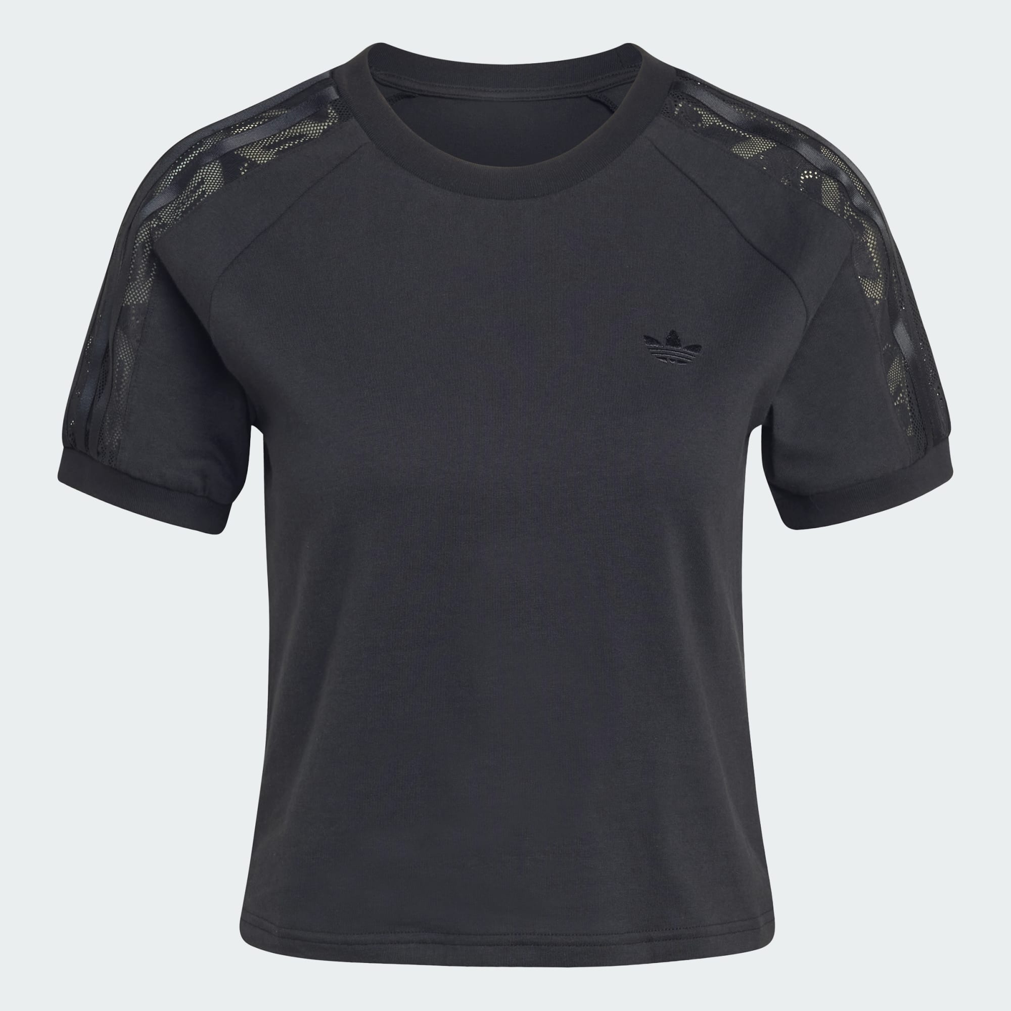 Spets möter atletisk elegans med LACE CALI T-SHIRT. Det här plagget är en hyllning till adidas Originals rebelliska anda och blandar ikoniska designelement med en modern twist. T-shirten är tillverkad av bomull i singeljersey och har en smal passform som omsluter kroppen och ger en stilren och bekväm känsla. Den rundade halsringningen ger en klassisk touch och gör den till ett mångsidigt plagg för olika tillfällen. Denna t-shirt från adidas är mer än bara en topp. Den är ett statement. Med intrikata spetsdetaljer förkroppsligar den essensen av sportig femininitet och är ett utmärkt val för dig som vågar trotsa det ordinära.