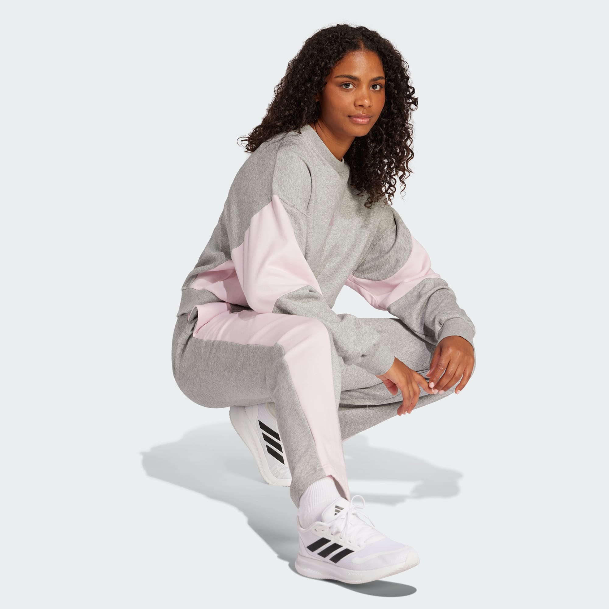Det här träningsstället från adidas är gjort för ledig komfort. Sweatshirttyget i bomull är mjukt och skönt – precis vad du vill ha under lata dagar. Den lösa passformen ger gott om rörelseutrymme och de enkla blockfärgerna ger en sportig känsla. Genom att välja återvunnet material kan vi återanvända material som redan har skapats, vilket hjälper att minimera avfall. Val av förnybara material hjälper oss att minska vårt beroende av ändliga resurser. Våra produkter tillverkade av en blandning av återvunna och förnybara material innehåller minst 70 % av dessa material.