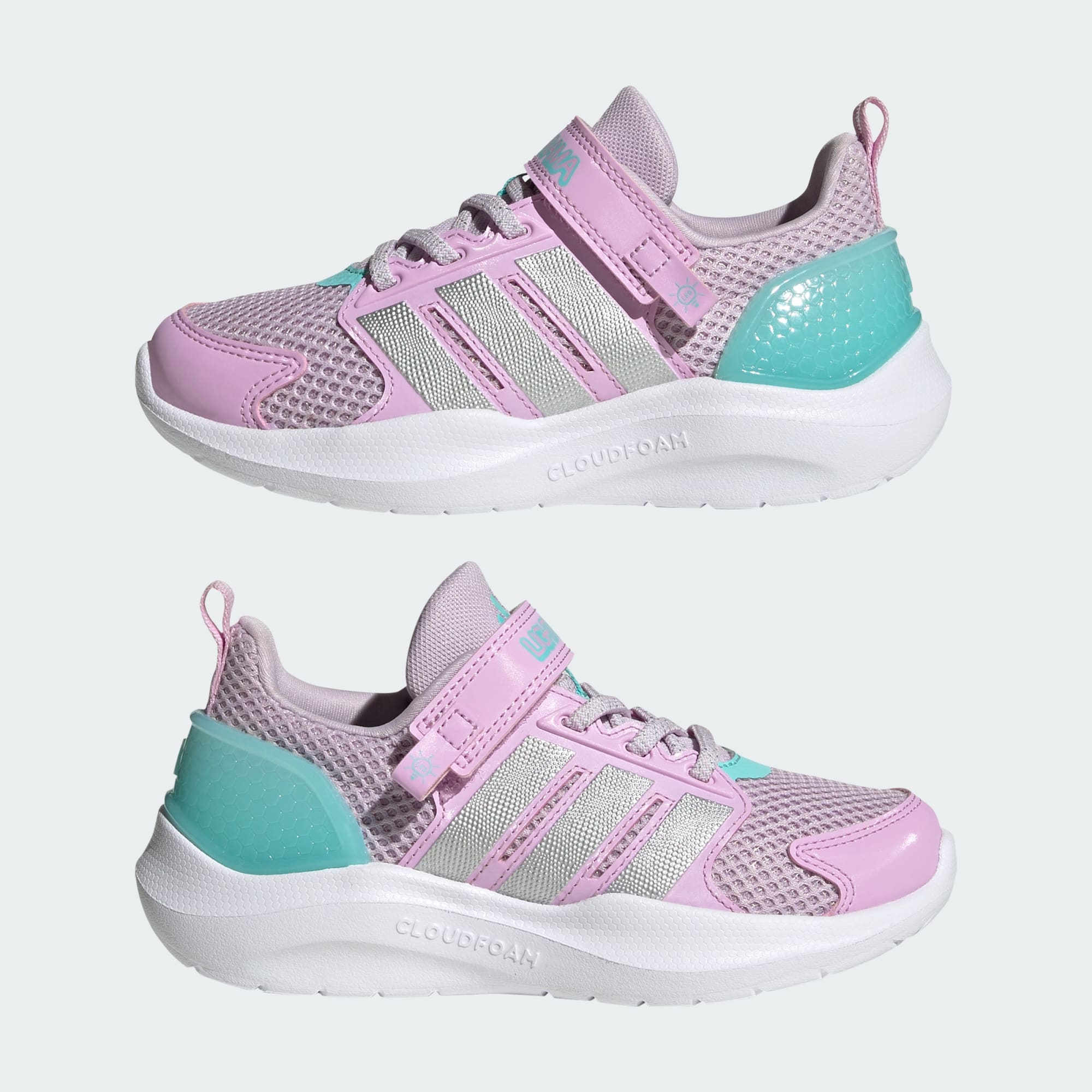 Löparskorna Lightorama är designade för barn med mycket spring i benen. De har en klassisk adidas-silhuett med en modern lager-på-lager-design. Skorna är utformade med Cloudfoam-dämpning för ett responsivt och mjukt steg. Elastiska snören och kardborrestängning ger en säker passform och gör skorna enkla att ta på och av. Hälkoppen har inbyggda LED-lampor som blinkar med varje steg, vilket barnen kommer att älska. Ikoniska 3-Stripes och Sportswear-loggan ger en autentisk adidas-touch.