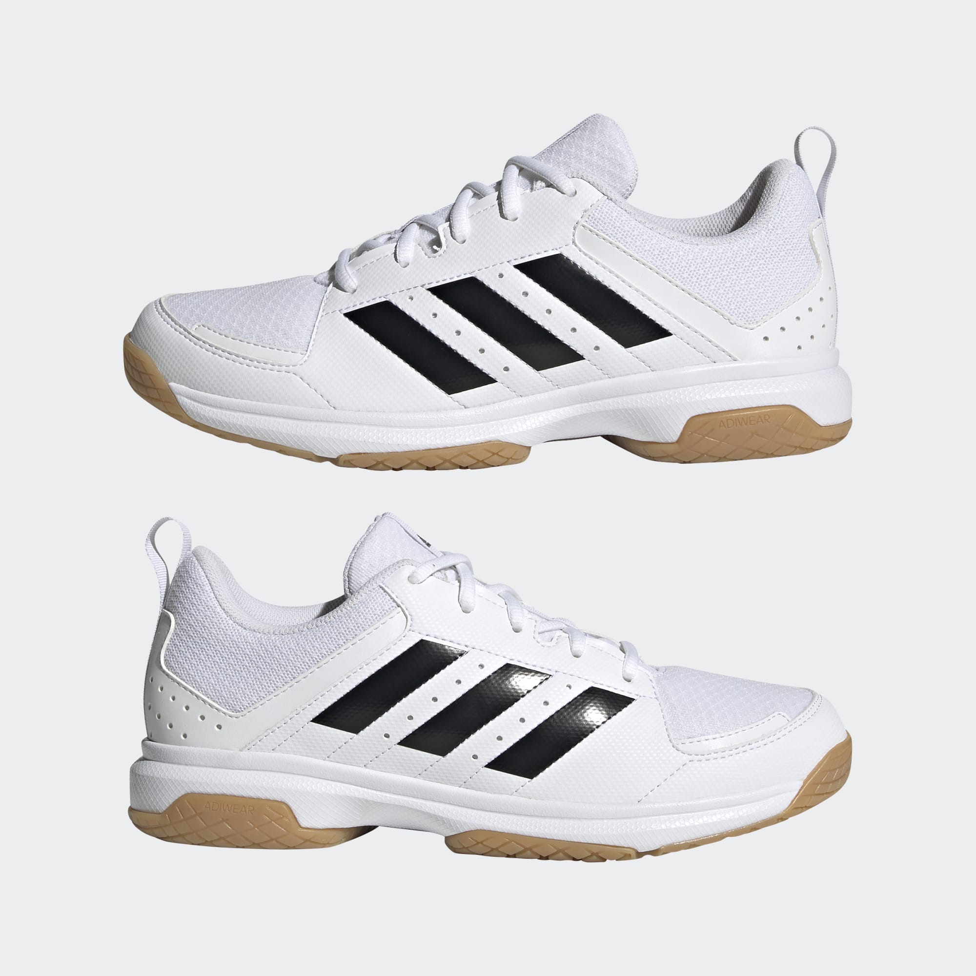 De här adidas Ligra 7-skorna är skapade för att prestera på alla typer av planer och hjälper dig att förbättra inomhusspelet. När spelet växlar upp ger ovandelen i ventilerande mesh en bekväm och självsäker känsla. Kombinationen av en greppande yttersula i flera riktningar och stödjande överdrag ger stabilitet när du sätter igång ditt drömspel. Syntetläder på tån gör ger enastående slitstyrka. Den här produkten är gjord med Primegreen, en serie med mycket funktionella, återvunna material. 50 % av ovandelen utgörs av återvunnet material. Ingen nyproducerad polyester.