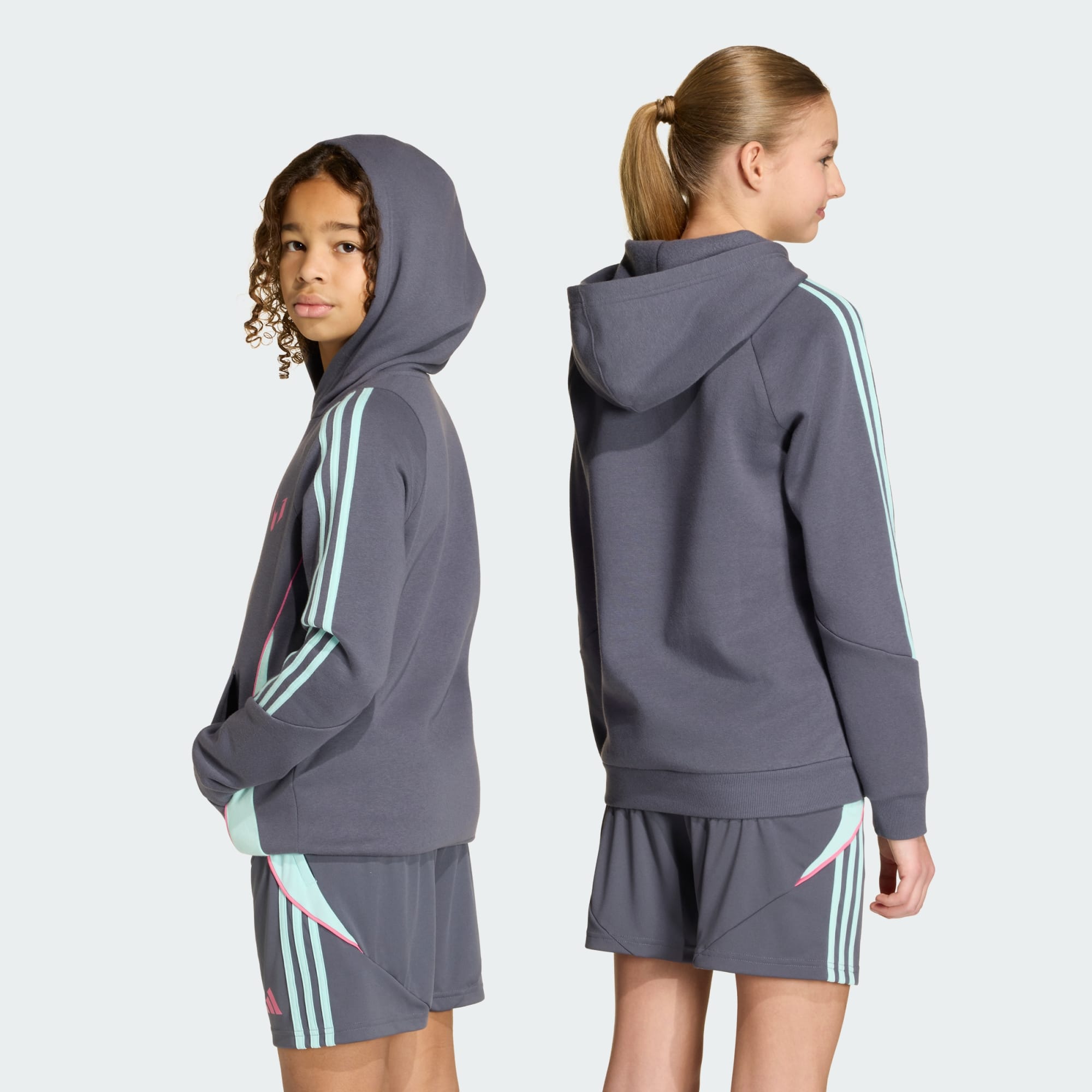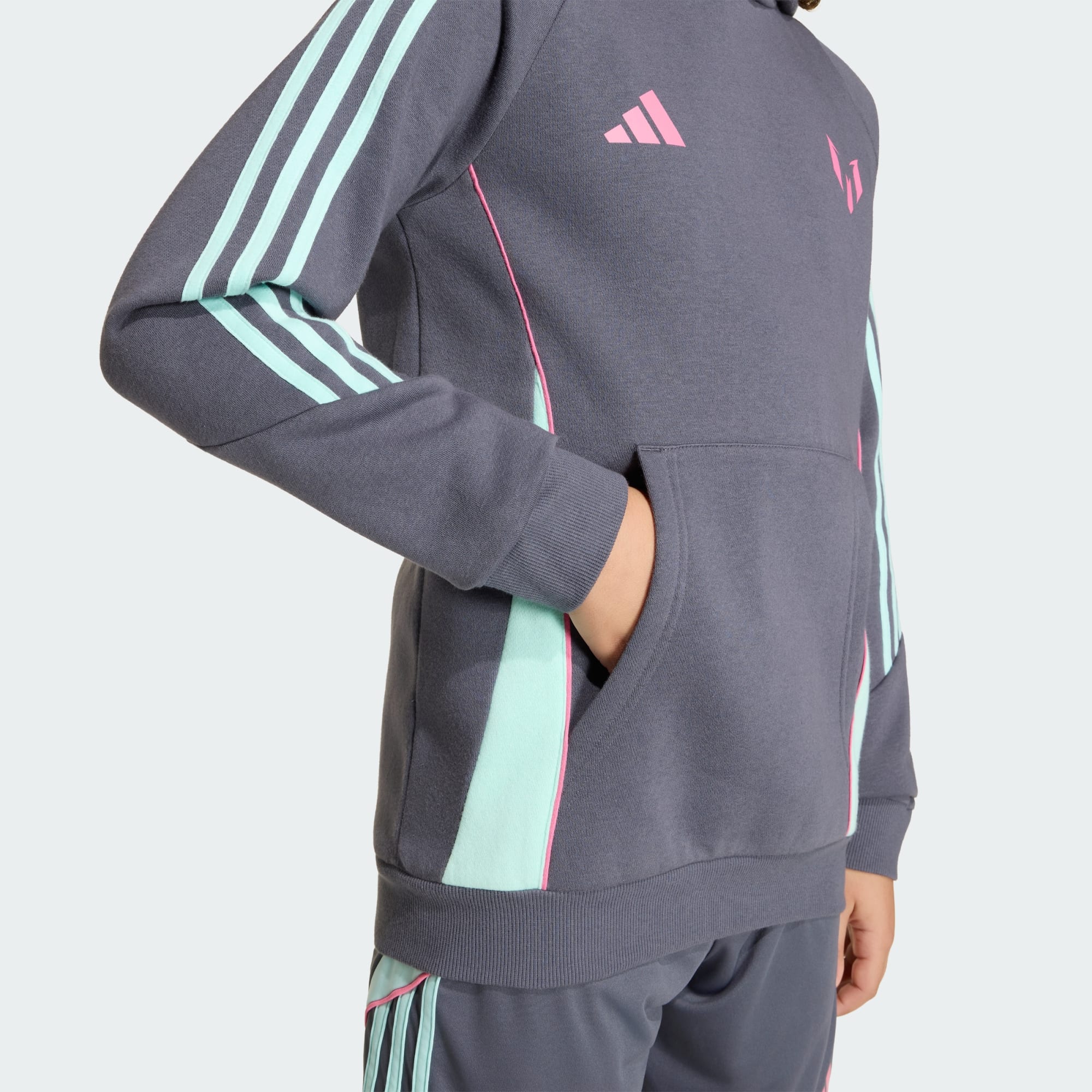 Representera världens bästa spelare. Den här adidashoodien för juniorer pryds av Messis ikoniska logga på bröstet och håller unga fans bekväma med mjukt fleecematerial, rymlig huva och känguruficka. Lätt att dra på över favoritlagtröjan så att de kan de kan visa sitt fotbollsintresse i alla väder.