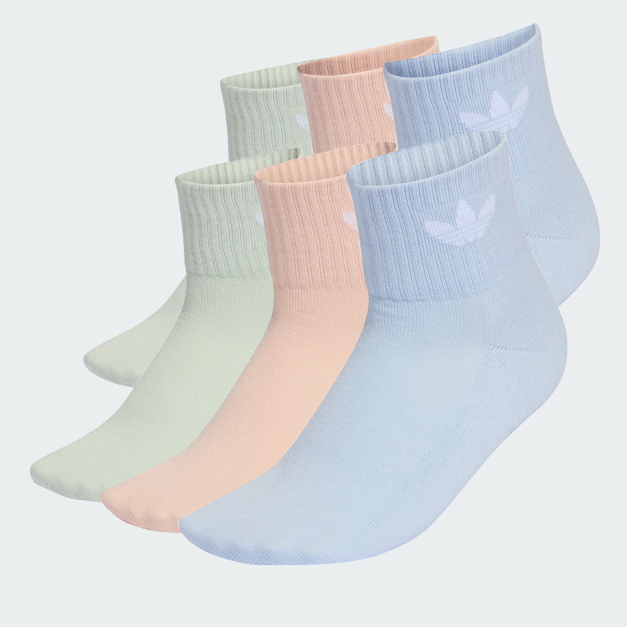 Rocka Trefoil-loggan var du än är med de här halvhöga strumporna från adidas. Sex par per förpackning ger komfort varje dag. Matcha dem med dina favoritsneakers eller tofflor och ge dig ut med stil. Minst 50 % av den här produkten är en blandning av återvunna och förnybara material.