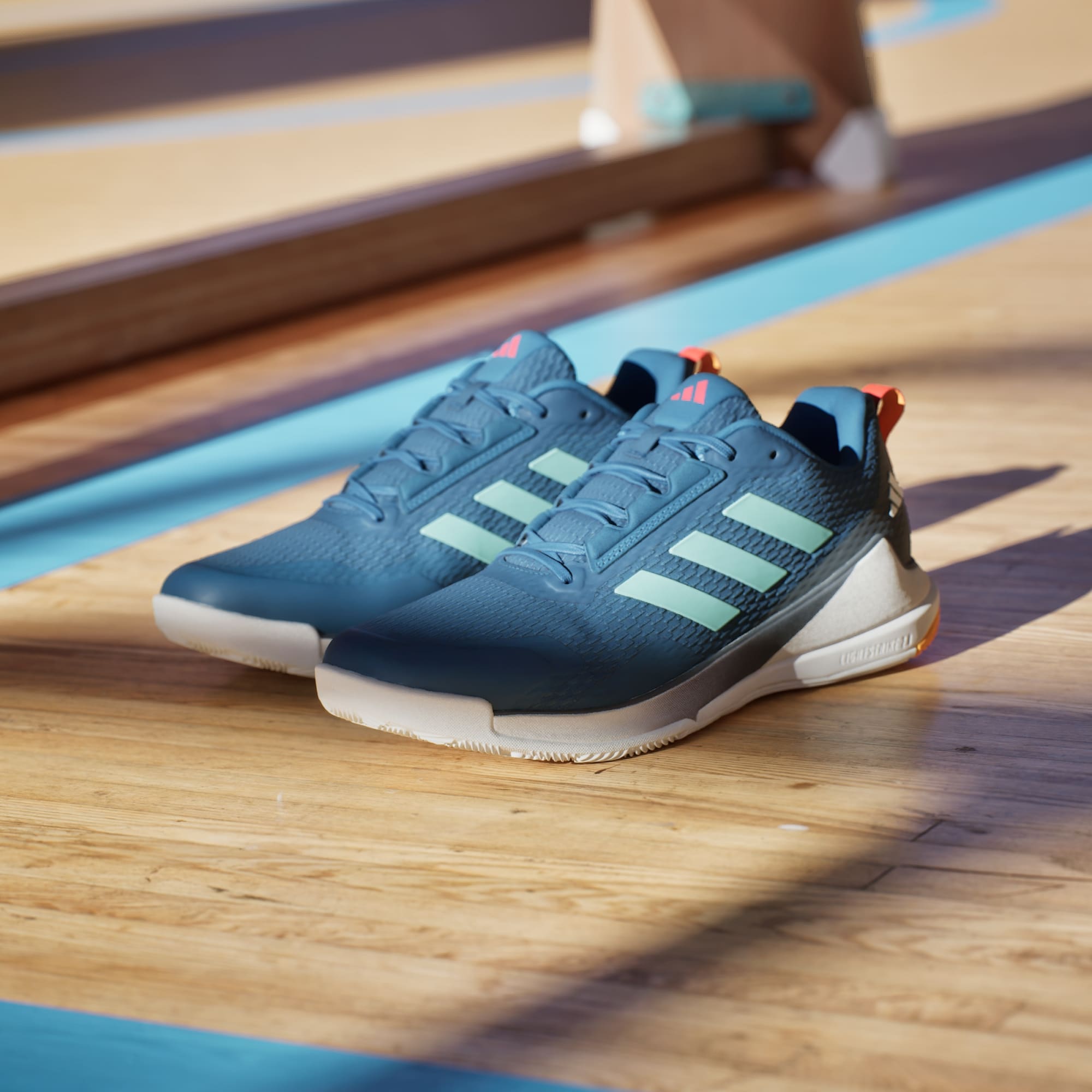 Glöm allt om att kliva ut på planen. I de här inomhusskorna från adidas flyger du ut på planen. En mjuk ovandel, vadderad plös och skaft omsluter foten med komfort så att du kan fokusera på att vinna. Mellansulan i EVA ger lättviktsdämpning och stöd för snabba vändningar och hopp i sidled. Lightstrike-teknologi i hälen absorberar stötar samtidigt som den är responsiv och ger kraft åt dina steg. En Adiwear-yttersula av typen non-marking ger bra grepp på inomhusplaner för knivskarp kontroll. Den här produkten innehåller minst 20 % återvunnet material. Genom att återanvända material som redan skapats bidrar vi till att minska avfall, minska vårt beroende av ändliga resurser och minska våra produkters miljöavtryck.