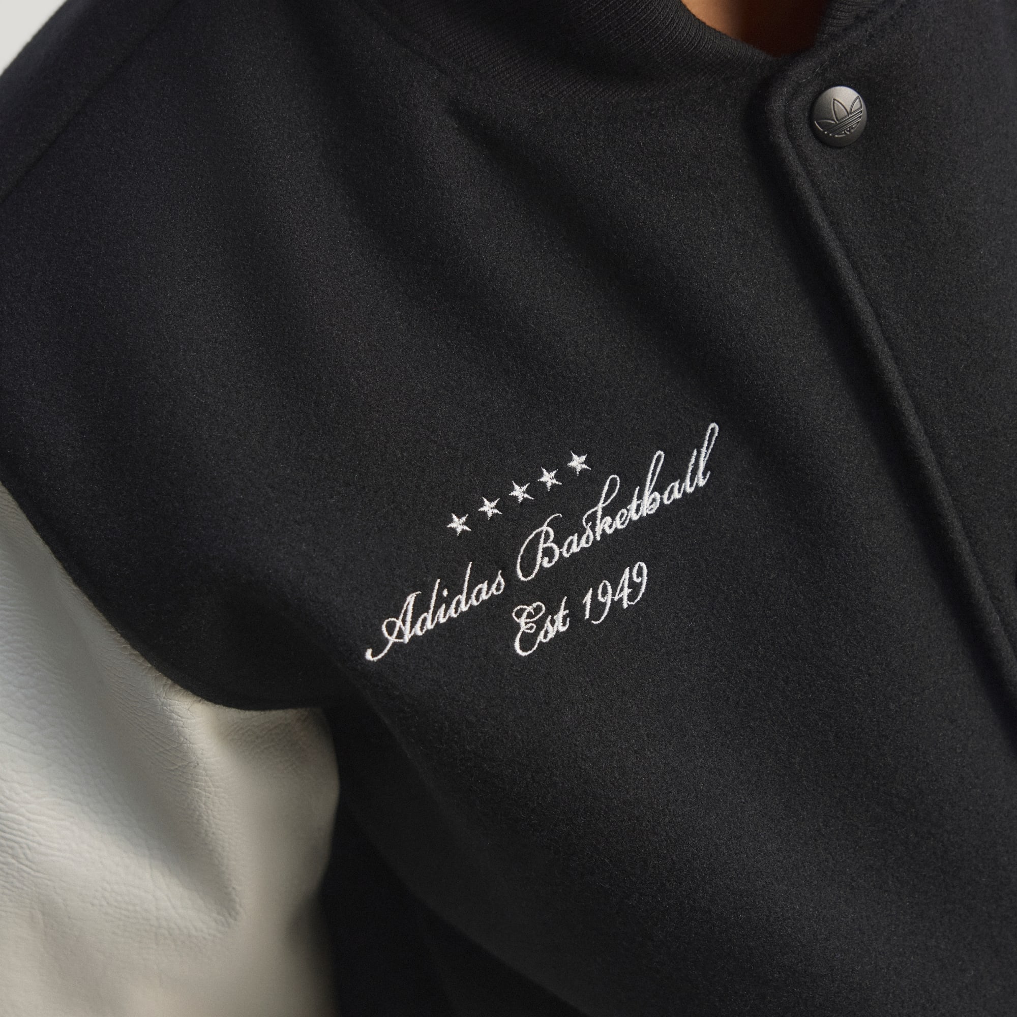 När du vill sätta ditt basketfandom i centrum, ta fram denna Originals Basketball Jacka. Den här toppen har en snygg grafik på bröstet och mixar collegekänsla med klassisk basketstil. På ryggen fulländar en stor Trefoil-logga den stilrena looken. Den lösa passformen i mjuk single jersey gör plagget lika bekvämt vare sig du sitter courtside eller bara visar din kärlek till sporten. Bomberkragen och knappstängningen ger en retrokänsla som håller din stil skarp och ditt självförtroende på topp hela dagen.