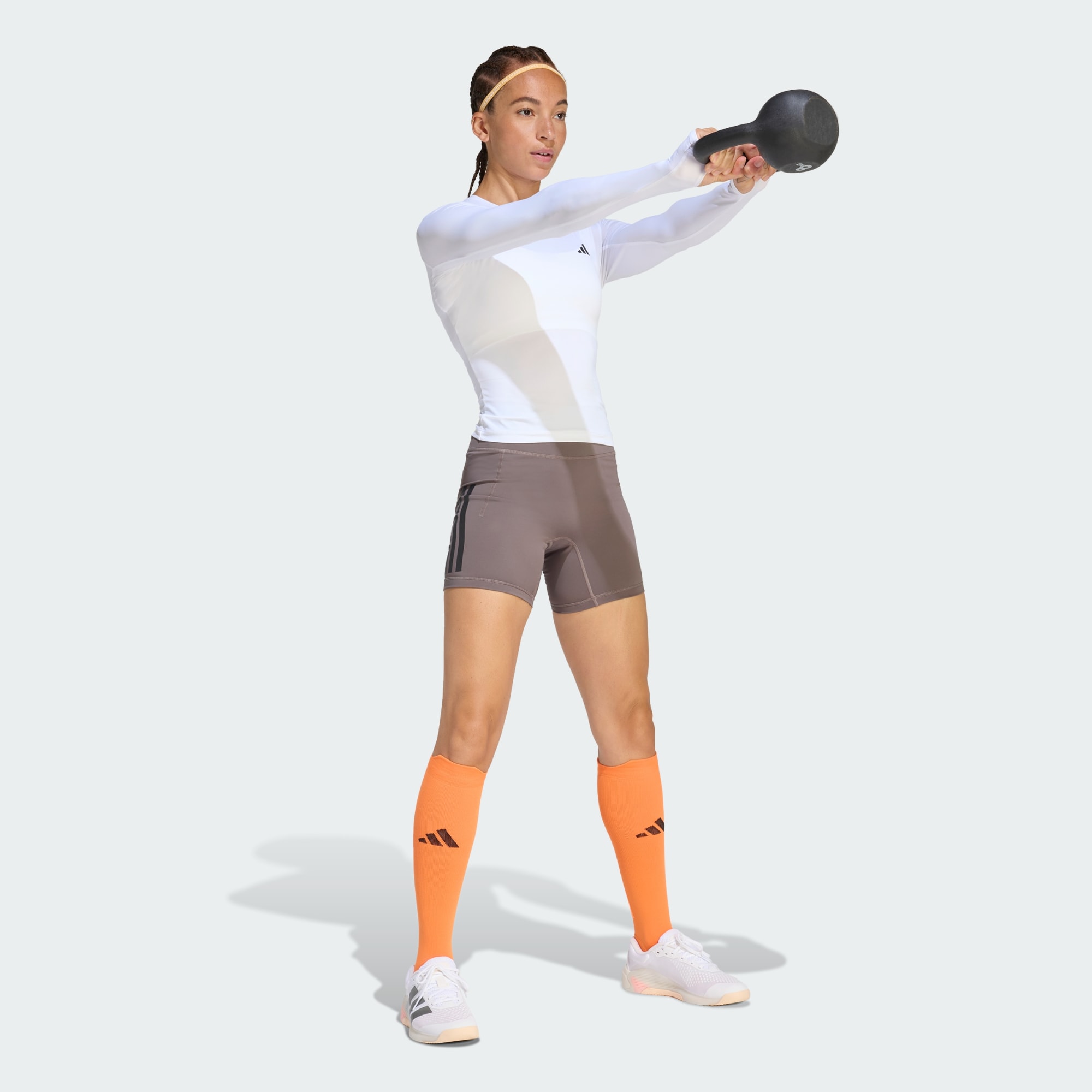 Ge allt under träningspasset i en PrimeLift Essentials Workout Contour-topp med långa ärmar. Den här långärmade toppen handlar om självförtroende och prestation och är designad för dig som omfamnar gymmet som sin fristad. Toppen har en elegant, åtsittande passform för en smickrande siluett som följer dina rörelser. Den är tillverkad av singeljerseytyg som känns mjukt mot huden, och har tumhål som ser till så att ärmarna håller sig på plats under intensiva träningspass. Upplev fördelen med svettavledande CLIMACOOL-teknik. Materialen transporterar bort svett för en torr och sval känsla. Allt för att du ska kunna fokusera på träningen. Tyget har UV-skydd, vilket innebär att toppen även är lämplig för utomhusträning. Den här toppen passar utmärkt för dig som tycker om att klä dig i lager-på-lager för att uttrycka din personliga stil samtidigt som du strävar efter att uppnå dina fitnessmål. Utformad för hybridträning och mångsidig prestanda.