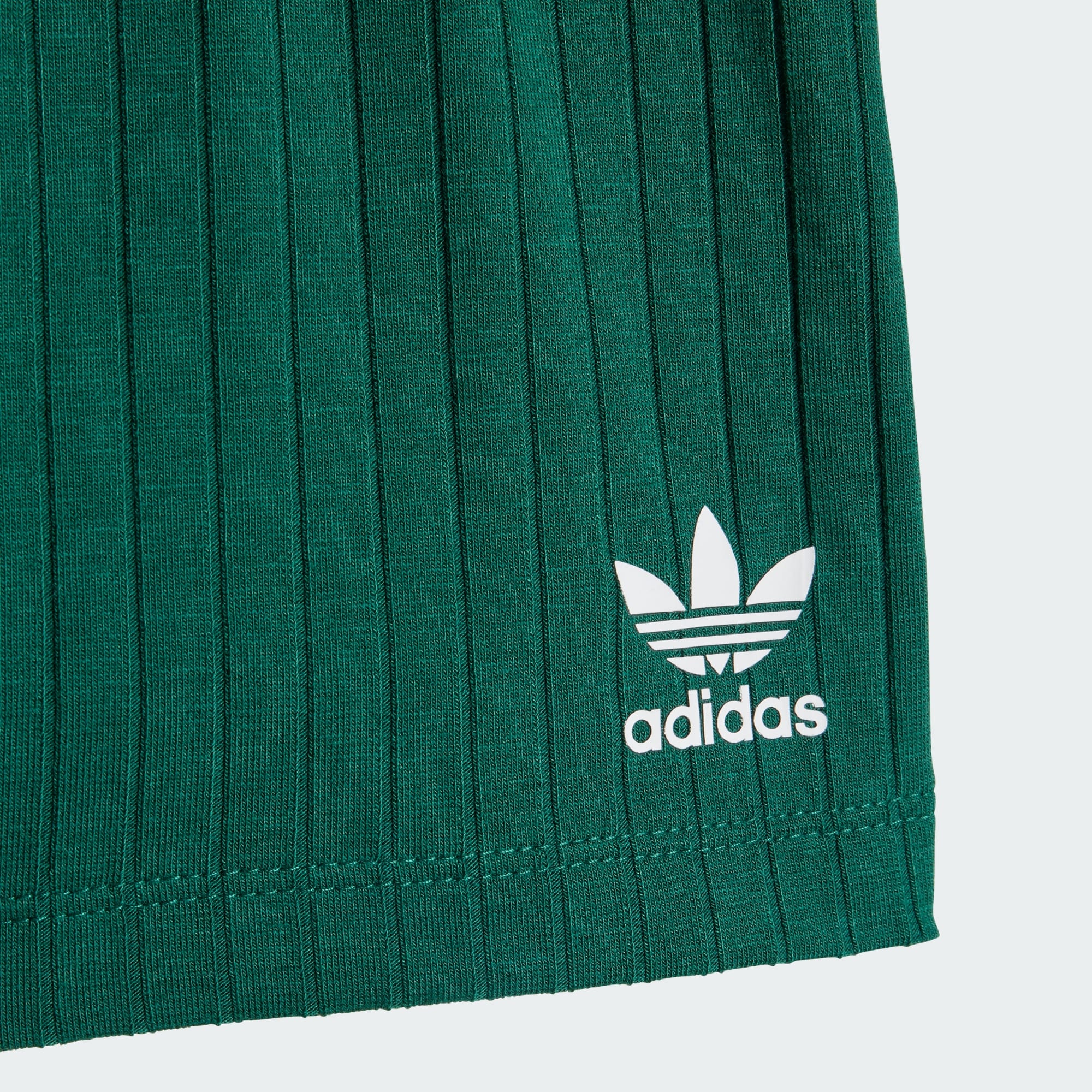 Regular Wide Rib-setet med shorts och t-shirt är designat för små barn. T-shirten och shortsen erbjuder en perfekt kombination av stil och komfort och är ett perfekt alternativ för vardagsbruk. Setet har en normal passform och är tillverkat av ett slitstarkt ribbstickat tyg som är mjukt och skönt mot barnens hud. Shortsen har en dragsko för rörelsefrihet och bekvämlighet under lek och andra aktiviteter. Den gör också shortsen enkla att ta på och av när ett snabbt ombyte krävs. Den rundade halsringningen ger t-shirten en klassisk touch, medan loggan i högdensitetet på vänster bröst och vänster ben betonar den kvalitet och prestanda som adidas gjort sig känt för. Det här adidas-setet bestående av t-shirt och shorts är ett perfekt alternativ för föräldrar som söker praktiska men stilriktiga plagg till sina små barn. Setet passar lika bra på förskolan som hemma.