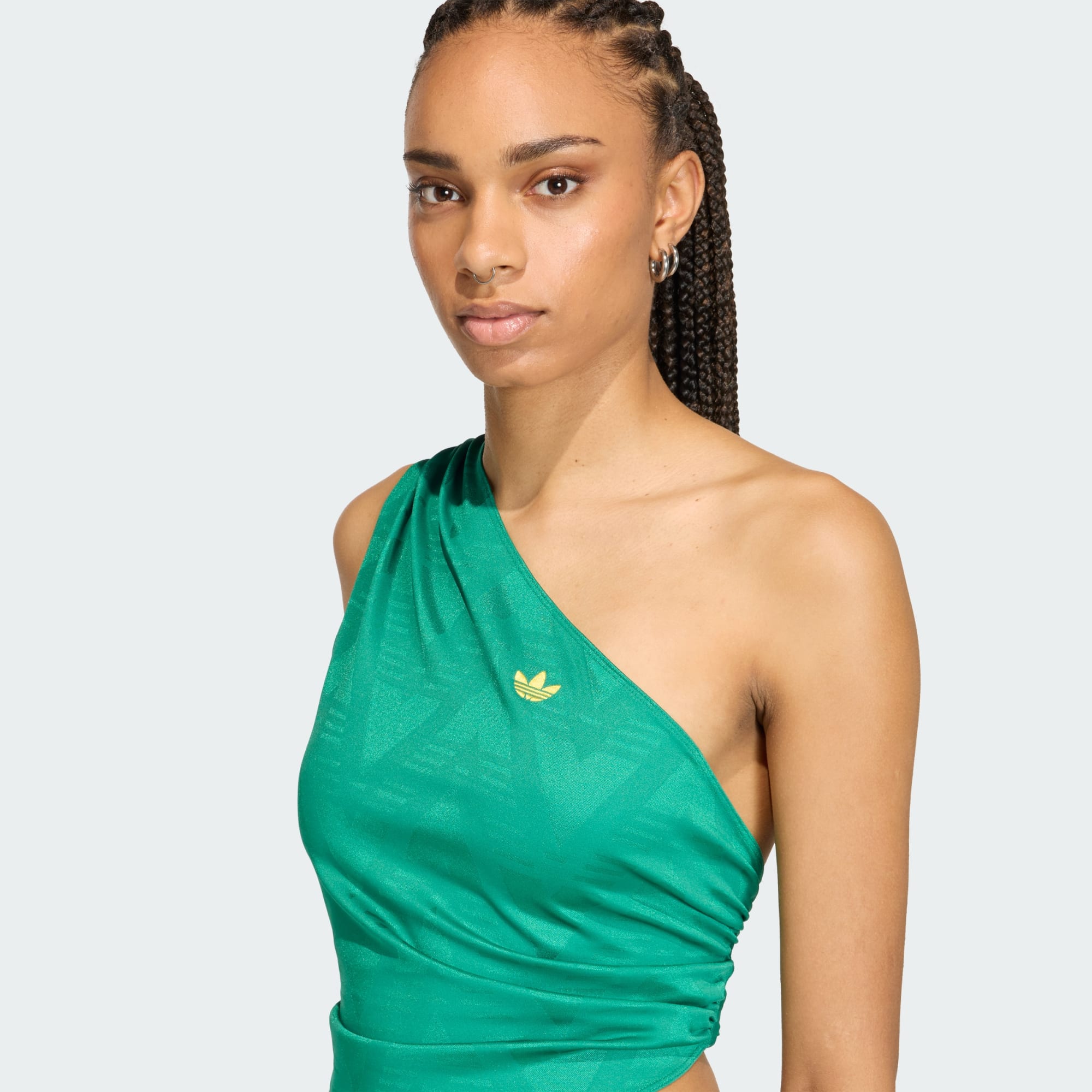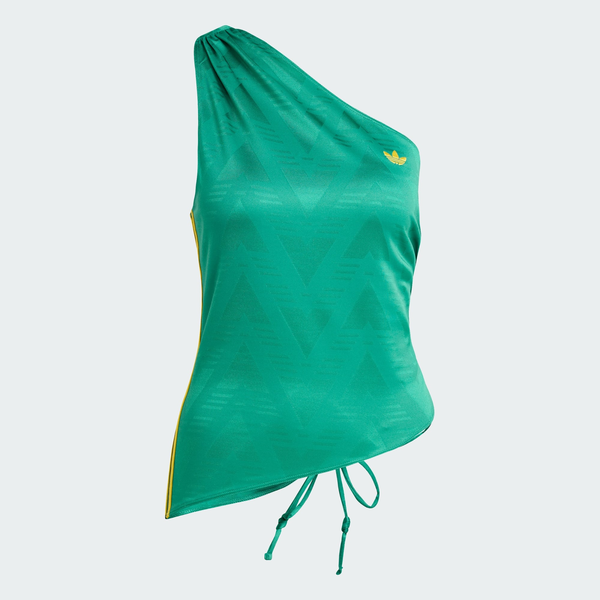 Rouched One Shoulder-topp ger street style en fräsch energi och modern känsla med sin vintageinspirerade design och silhuett som drar blickarna till sig. Den är tillverkad i mjuk jacquardstickning för strukturerad komfort och har en asymmetrisk skärning och smal passform, vilket ger din look en slående energi som drar blickarna till sig. adidas Trefoil-loggan på bröstet ger looken en autentisk känsla. Som en del av Originals-kollektionen blandar den här toppen kulturarv med nutid – ett tidlöst plagg skapat för de som sätter tonen.