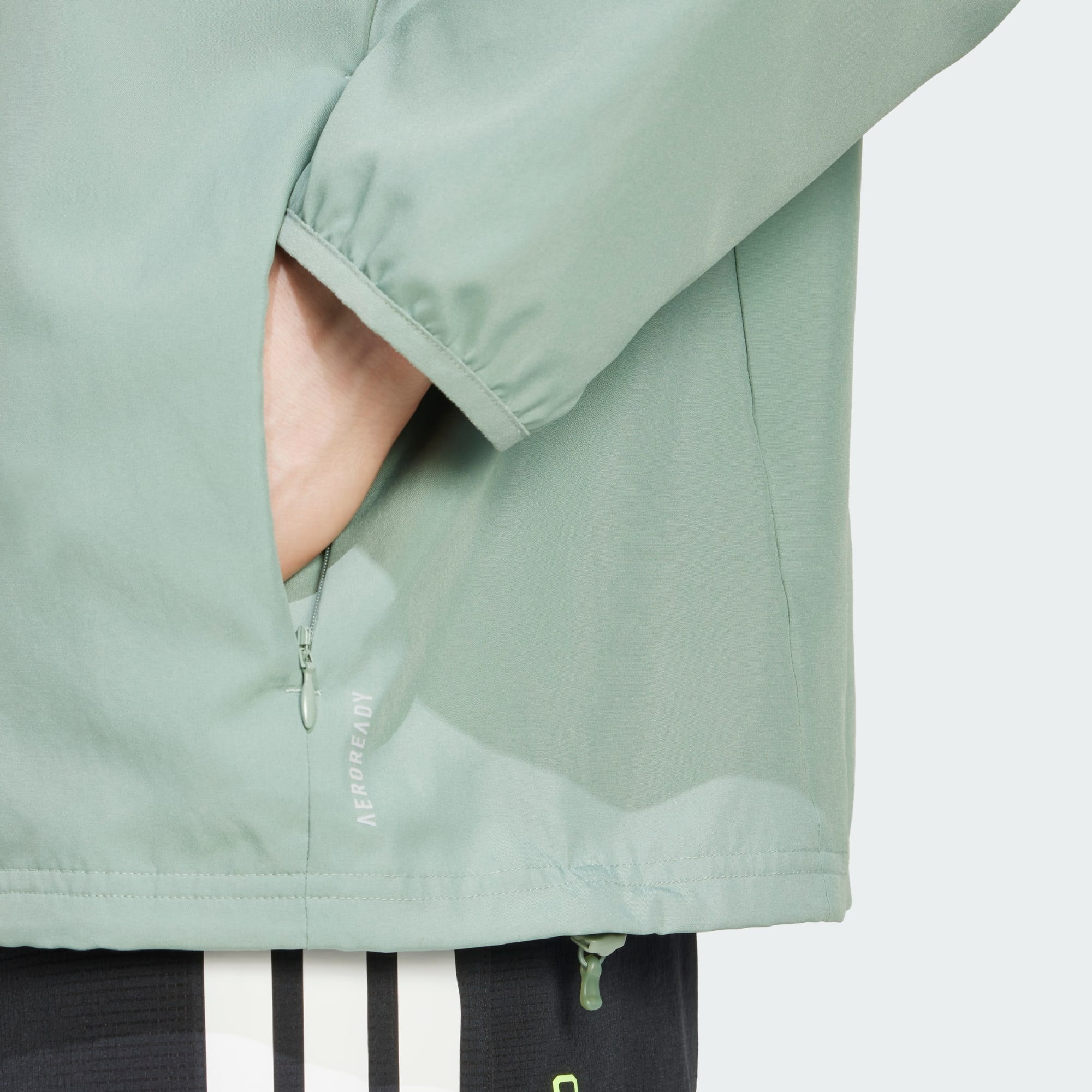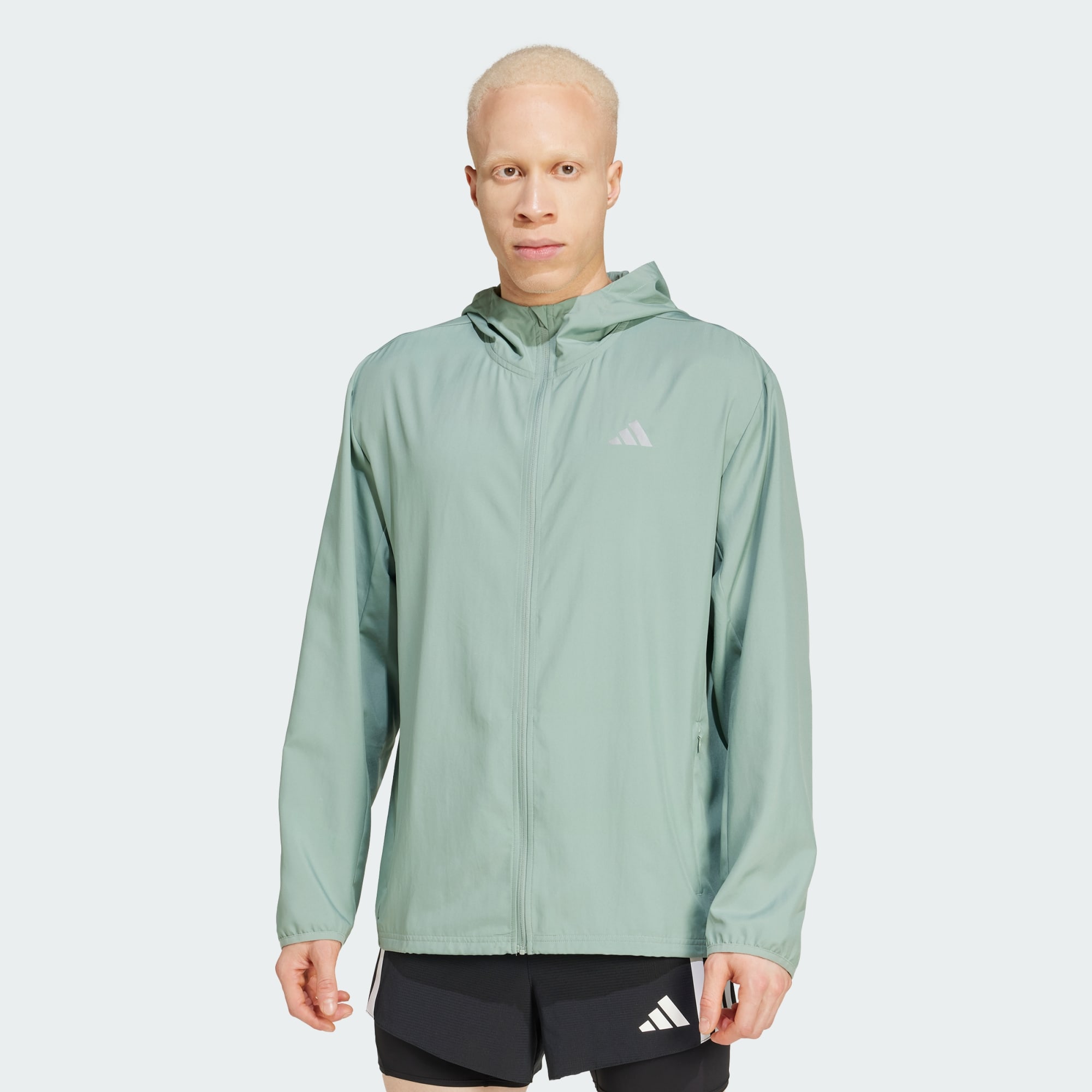 Rusta dig och ge dig ut. Den här löparjackan från adidas är ett lätt lager för kyliga dagar. AEROREADY hanterar fukt så att du håller dig torr kilometer efter kilometer. När du vill ha extra skydd fäller du bara upp huvan och drar åt fållen.