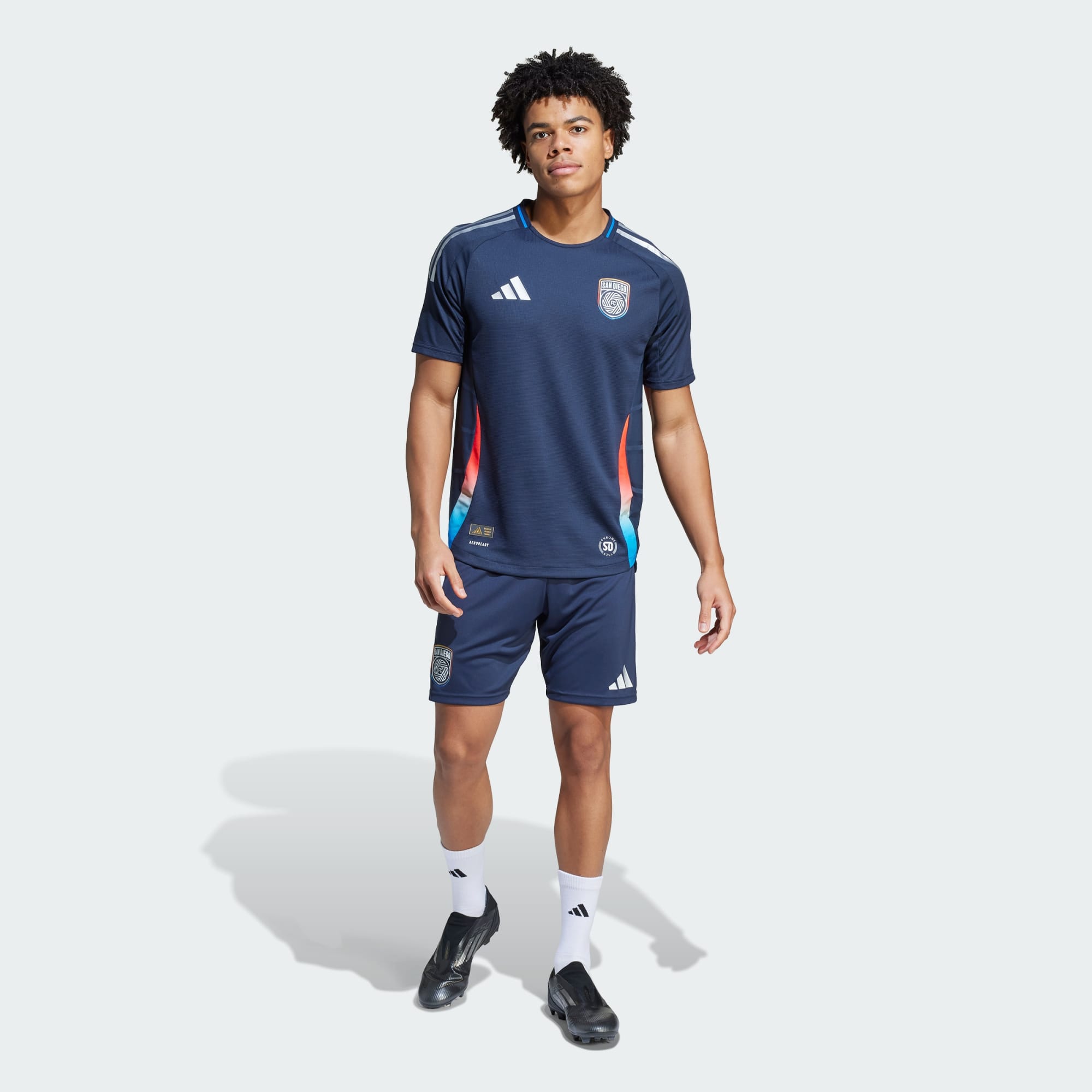 Find your football flow in San Diego FC's first-ever home jersey, created by adidas. With pops of color inspired by the club's badge and a "State of Flow" sign-off, this home authentic jersey is built for silky smooth play. AEROREADY and mesh inserts ensure you stay dry and cool on the field. A heat-applied crest shows your support.