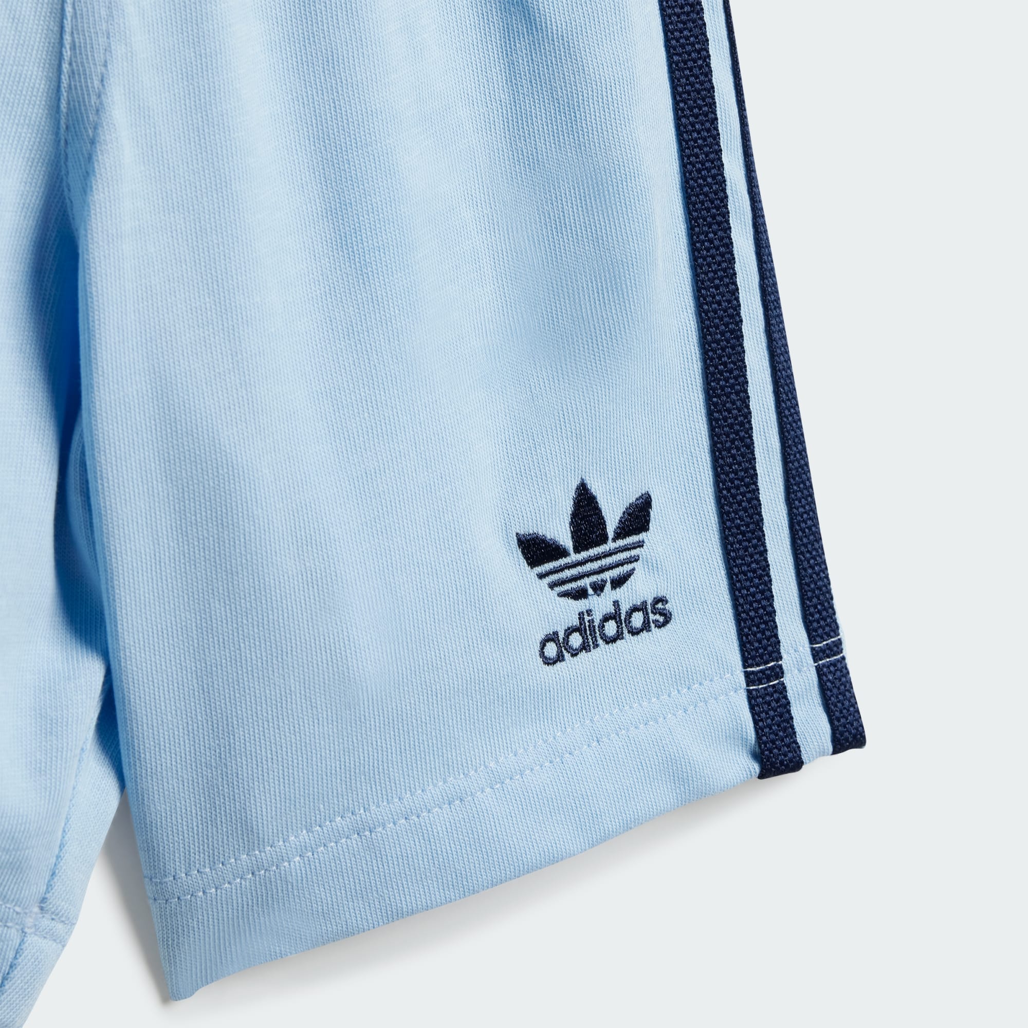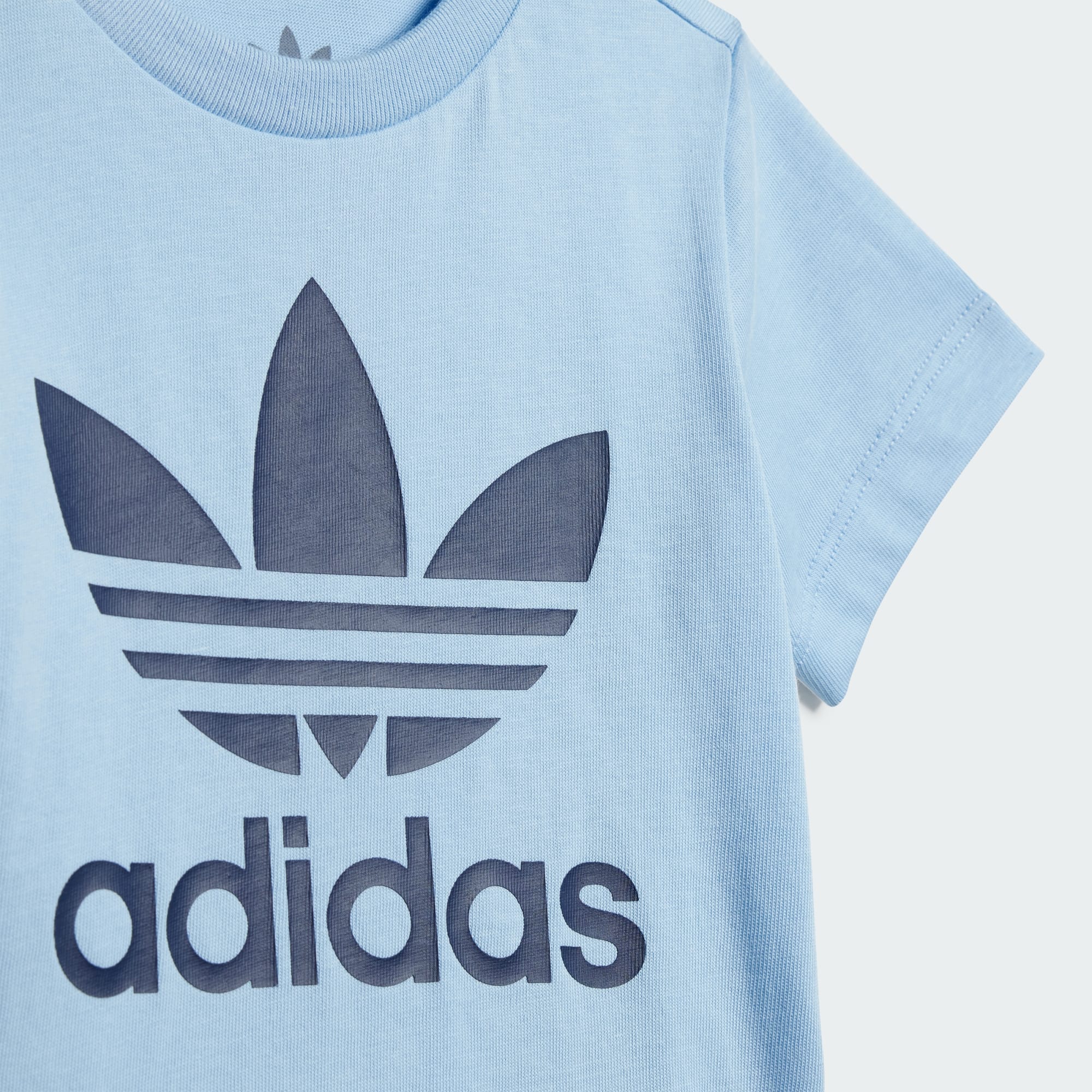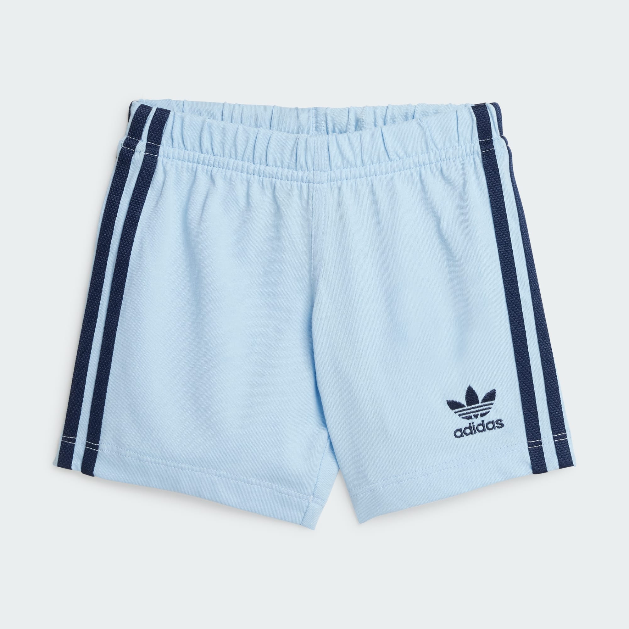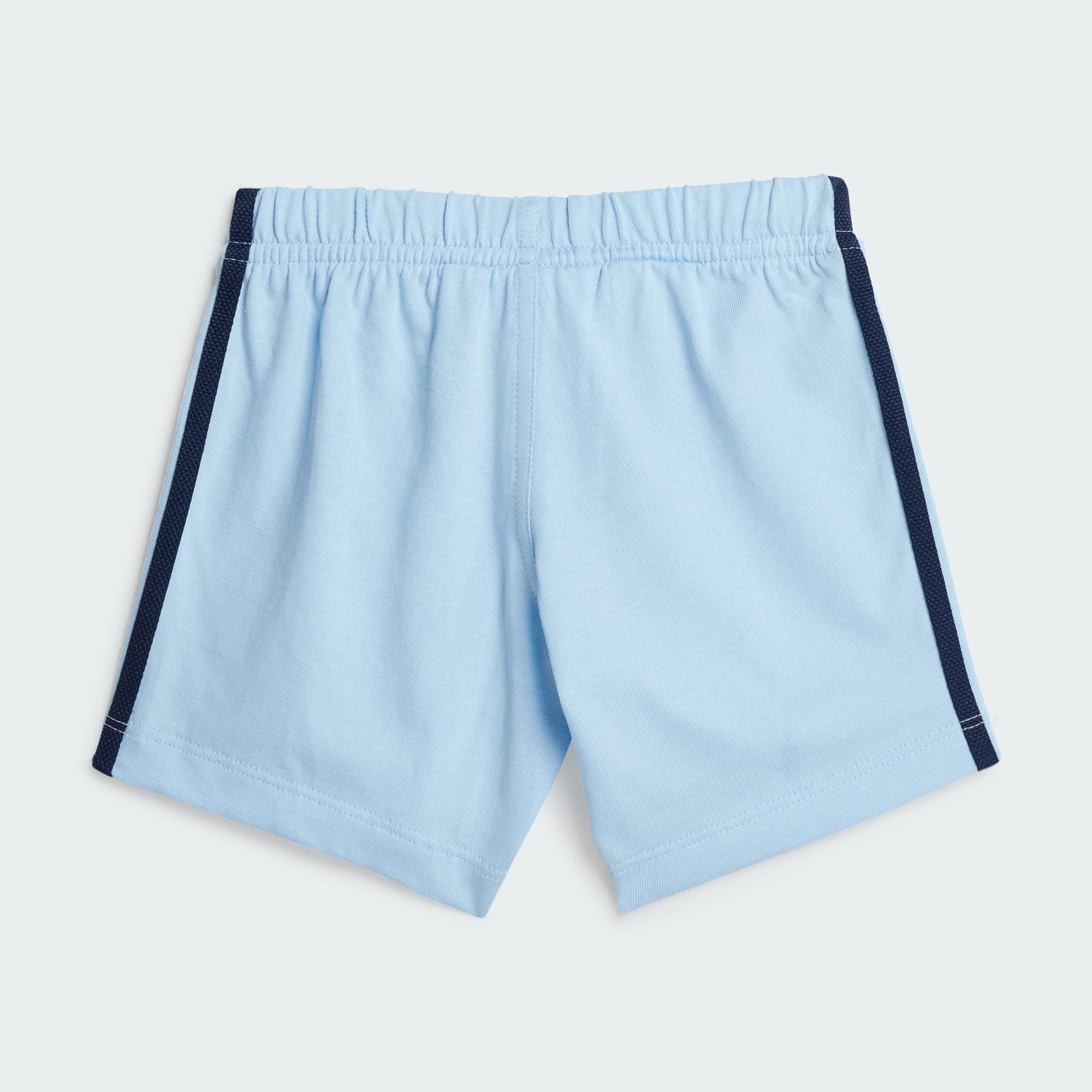 Lekoutfiten de kommer vilja ha om och om igen. I det här setet med shorts och t-shirt för baby från adidas är småttingen redo för allt. Den ikoniska Trefoil-loggan och 3-Stripes kombineras med en ribbad rund halsringning för en klassisk sportinspirerad look. Den elastiska midjan med dragsko, tryckknapparna på axeln och trikåmaterialet ger en skön känsla. Bomullen i den här produkten har hämtats via Better Cotton. Better Cotton använder en modell som kallas massbalans. Det betyder att Better Cotton inte fysiskt kan spåras tillbaka till slutprodukten. Läs mer här: https://bettercotton.org/who-we-are/our-logo/