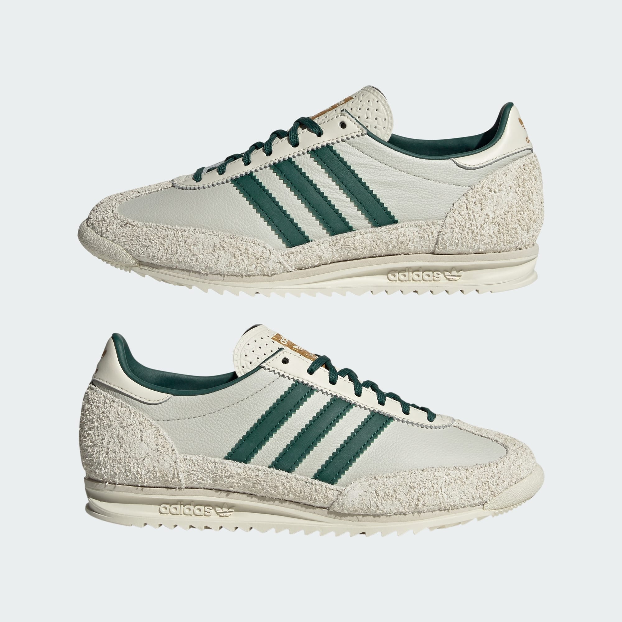 Paying homage to adidas sporting heritage, these SL 72 shoes are perfect for adding a retro-inspired look to your leisurewear. The design has been reimagined for everyday wear with a subtle proportion update and refreshed colours. The premium leather upper with suede accents honours their running roots while an EVA midsole and rubber outsole offer lightweight cushioning and traction.