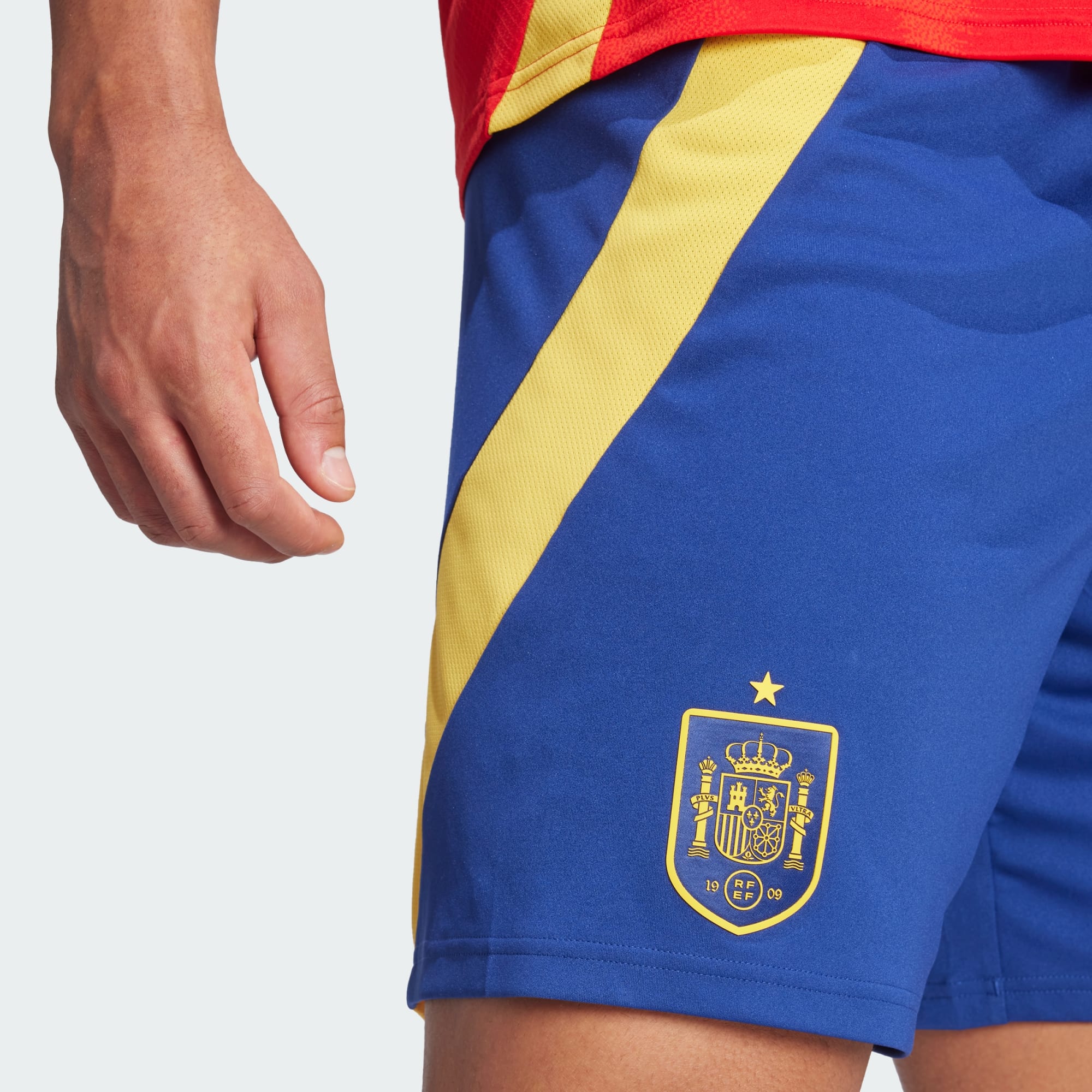 Stötta ditt landslag i de här matchshortsen från adidas. Med ett mjukt material och fuktabsorberande AEROREADY är de en del av ett hemmaställ inspirerat av Spaniens nationalblomma och håller dig bekväm oavsett om du befinner dig på läktaren eller följer matchen hemifrån. Ett vävt lagemblem ovanför fållen visar upp stolt fotbollsstil. Den här produkten är gjord i 100 % återvunnet material. Genom att återanvända material som redan skapats bidrar vi till att minska avfall, minska vårt beroende av ändliga resurser och minska våra produkters miljöavtryck.