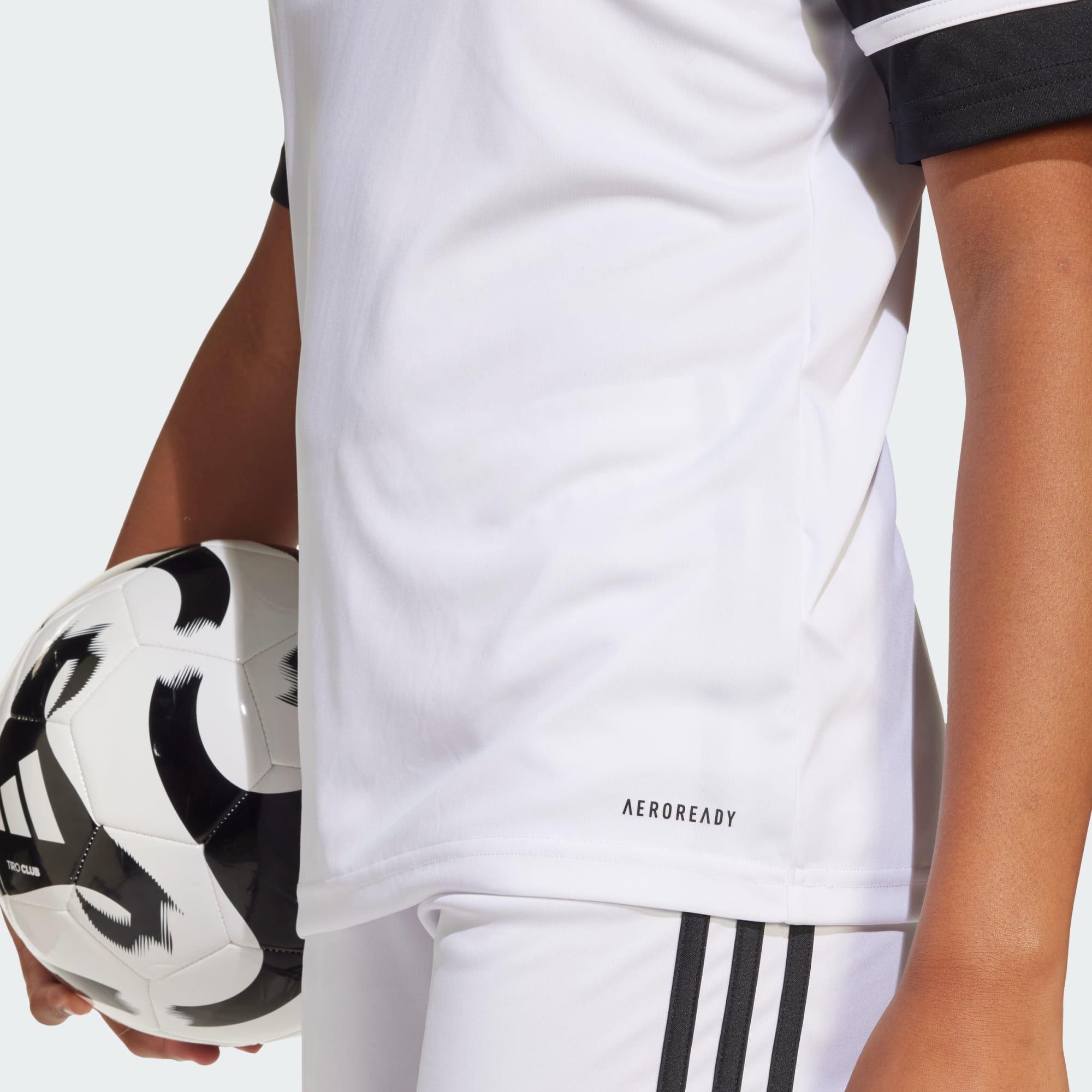 Känn lagandan med den här adidaströjan för juniorer. Den stilrena designen med ribbad, rund halsringning och ikoniska 3-Stripes på axlarna, lämnar gott om plats för dina lagdetaljer. Fuktabsorberande AEROREADY jobbar hårt i bakgrunden för att hålla dig torr och på topp. Den här produkten är gjord med 100 % återvunnet material. Genom att återanvända material som redan skapats bidrar vi till att minska avfall, minska vårt beroende av ändliga resurser och minska våra produkters miljöavtryck.