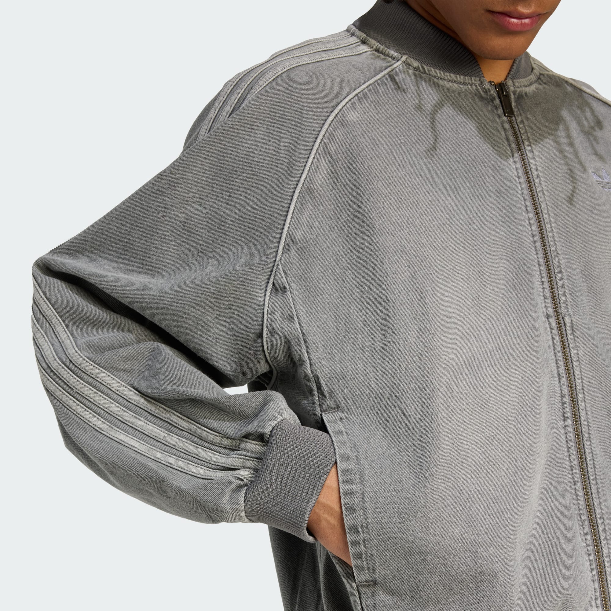 Denna bekväma adidas-träningsjacka är tillverkad av robust jeans och designad för att ha ett slitet utseende. Den lösa formen ger den en avslappnad stil som är perfekt för att slappna av. En klassisk krage och 3-Stripes längs ärmarna kopplar den till decennier av adidas arv.