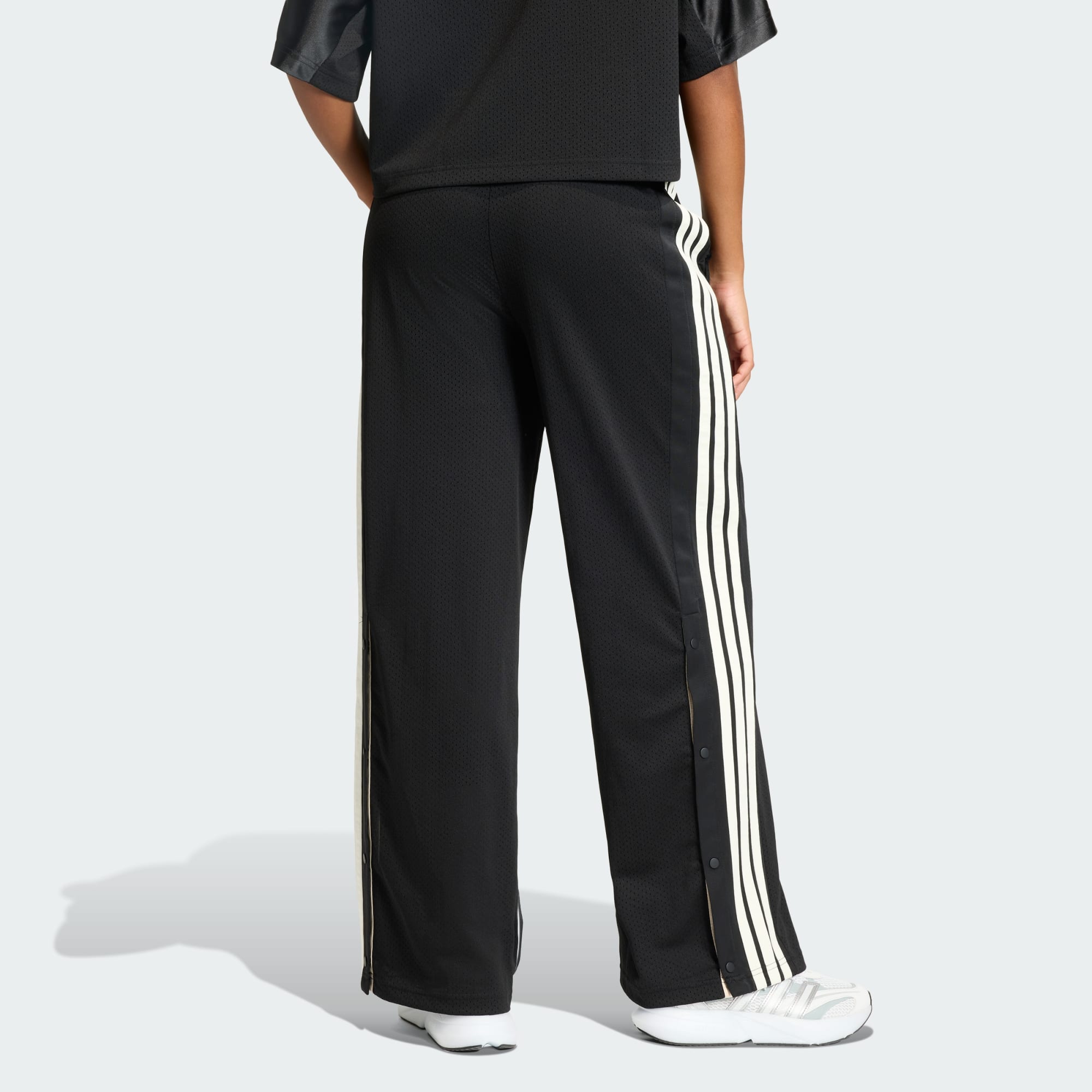 Stadium Mesh-byxorna är ett utmärkt exempel på sportinspirerat mode. De är utformade som en hyllning till den gemenskap och passion som förenar sportentusiaster. Byxorna är tillverkade av sportig mesh för god andningsförmåga och en bekväm passform som passar perfekt för vardagsbruk. Den höga midjan med synlig resår ger en säker och smickrande silhuett, medan sidofickorna erbjuder praktisk förvaring av dina värdesaker. Ikoniska 3-Stripes och 3 Bar-loggan tillför en autentisk adidas-touch. Tryckknappar längs byxbenen låter dig justera passformen på ett sätt som passar dig. De här byxorna som hyllar fankulturen passar lika bra, oavsett vilken sport som just ditt hjärta klappar för.