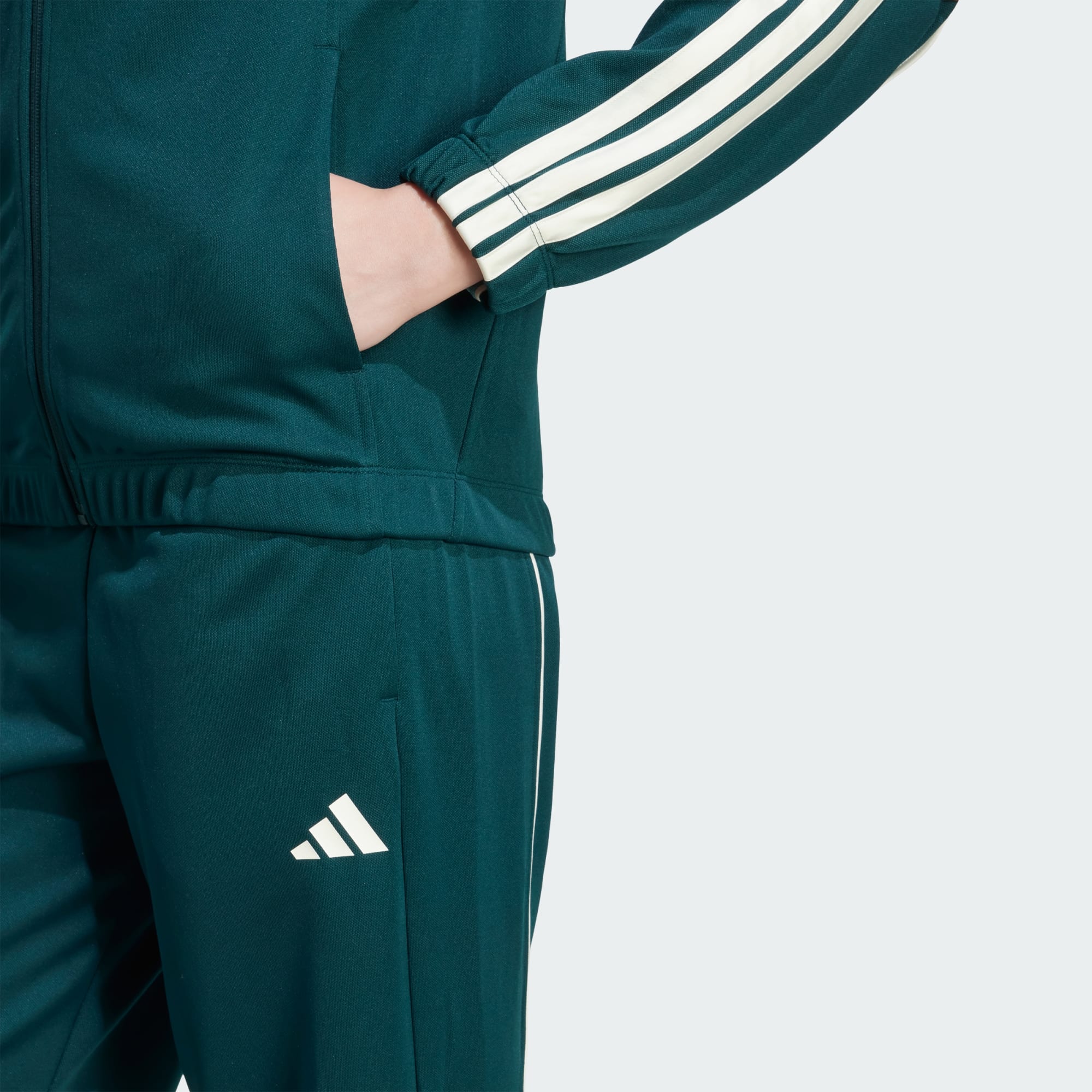Det här adidas-träningsstället är en omedelbar outfit som låter dig omfamna den avslappnade känslan hos lediga idrottare och 90-talets hiphop-legender. Den mjuka och smidiga dubbelstickade konstruktionen håller dig bekväm oavsett om du är på väg ut för att ta en kaffe eller mysa i soffan. Byxorna har en avslappnad passform som är rymlig i höfterna och låren för att ge dig gott om rörelseutrymme. Fickor med dragkedja ger säker förvaring av din telefon och dina nycklar så att du kan njuta av livet i farten utan bekymmer.