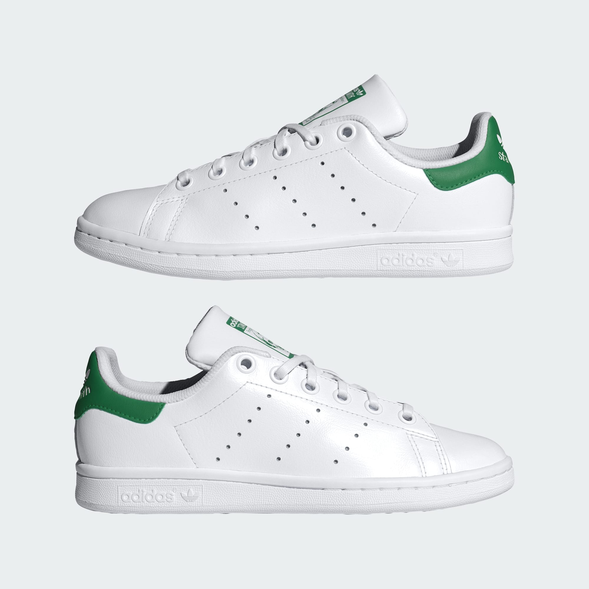 I generationer har adidas Stan Smith varit det självklara valet för mångsidig stil. De här Stan Smith-skorna för juniorer har samma avskalade ovandel och perforerade 3-Stripes som originalet. Mjukt fullnarvskinn omsluter foten i förstklassig komfort. Gummiyttersulan håller jämna steg med dig både i och utanför stan. Stan Smith-skorna har fått sitt namn efter den legendariska tennisspelaren och fortsätter att göra avtryck med sin tidlösa och avslappnade stil. Bär dem med jeans och en bomberjacka, eller med khakishorts och pikétröja för en preppy stil.