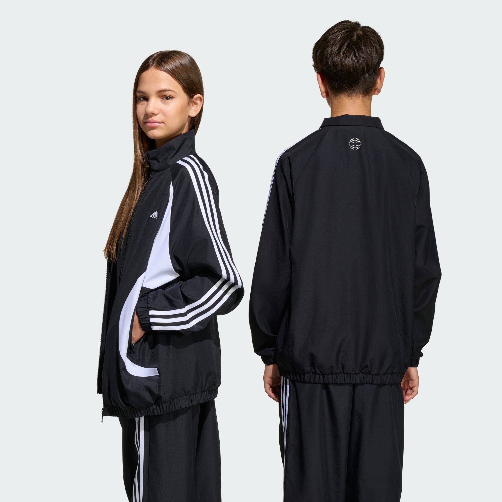 Träningsjacka i lös passform med hel dragkedja och stark visuell design, framtagen för en balans mellan komfort och modern stil.