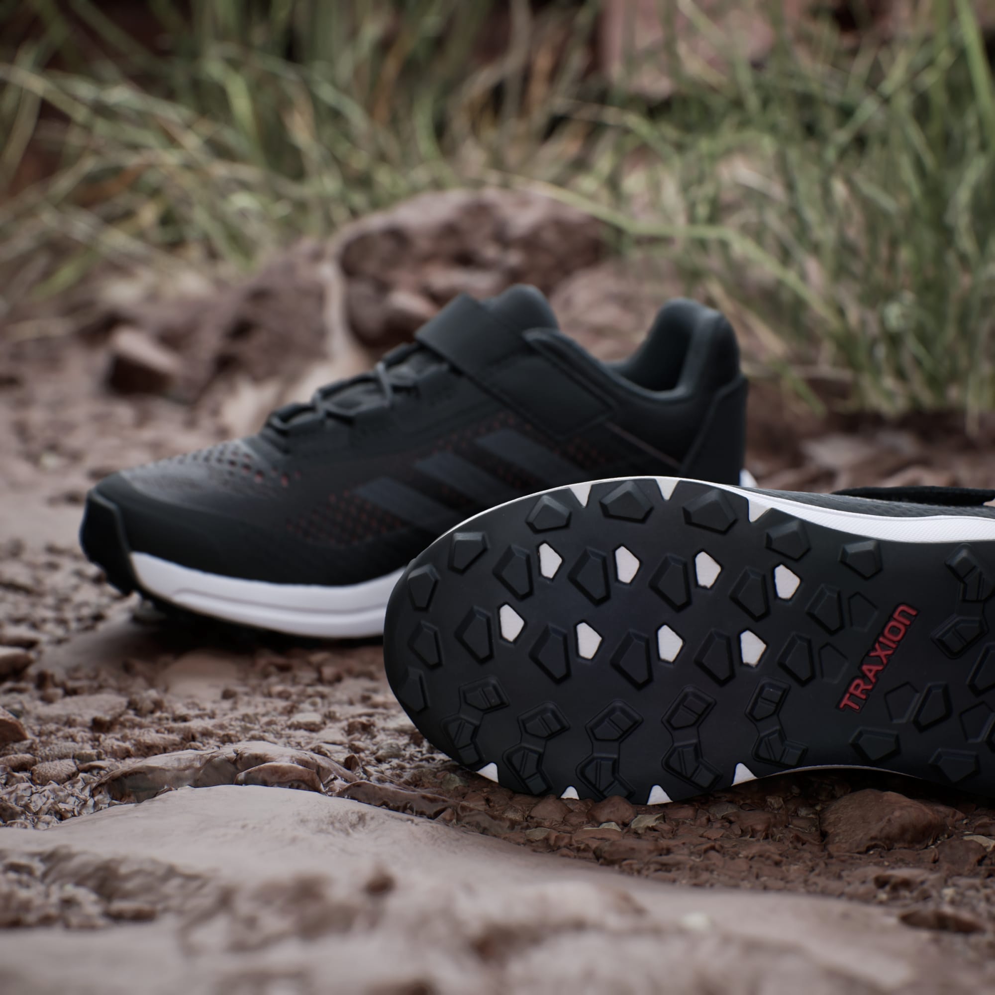 Greppande terränglöparskor som är lätta att ta på, delvis gjorda i återvunnet material.
