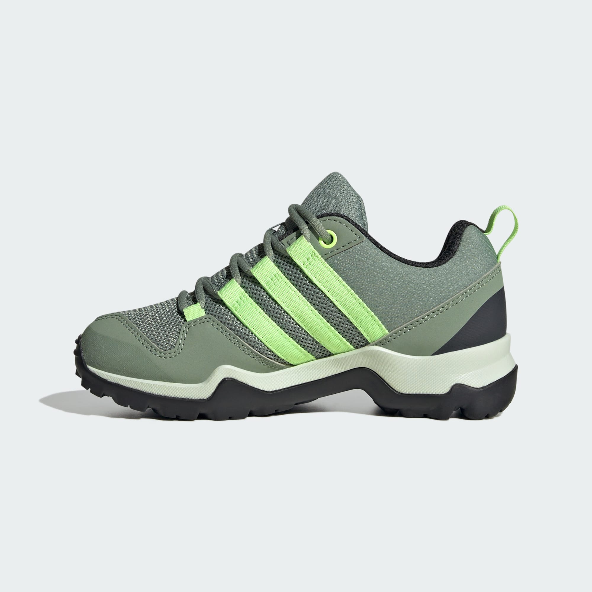 Med de här AX2R-vandringsskorna för barn från adidas vet äventyret inga gränser. Barn kan utforska med självförtroende från lekplatsen till terrängen i de här skorna som har en lätt, stabil känsla och säkert grepp. Mellansulan i EVA ger långvarig stötdämpning och yttersulan Traxion ger maximalt grepp i alla riktningar. Ovandelen är gjord i en serie återvunna material och består av minst 50 % återvunnet innehåll. Den här produkten är en av våra lösningar för att bidra till att sätta stopp för plastavfallet.