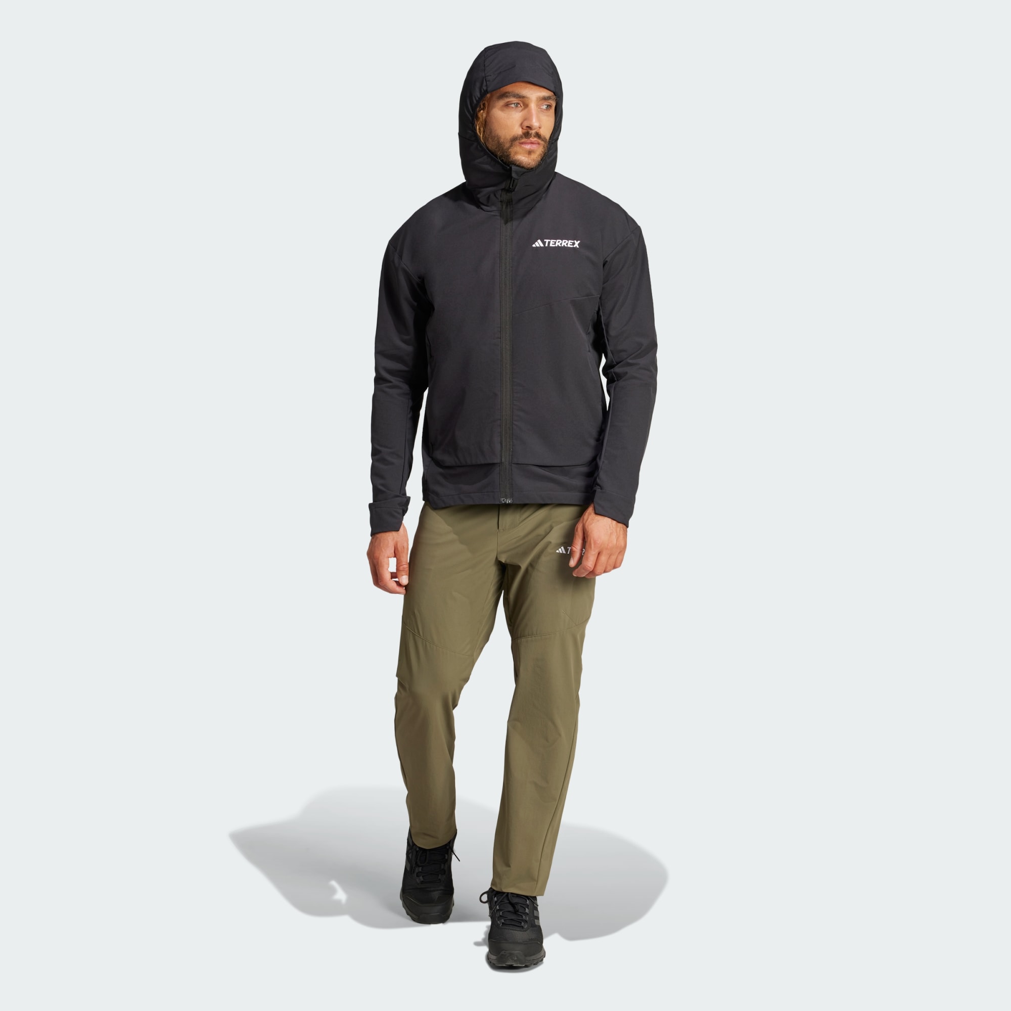 Den här vandringsjackan i softshell-material från adidas är redo för alla äventyr, från fullspäckade dagar i terrängen till urbana vandringar. Nedhasade axlar och en stretchig konstruktion gör att du kan röra och böja dig naturligt när du utforskar omgivningen, och huvan och de elastiska muddarna stänger ute kylan. Ryggsäckskompatibla fickor med dragkedja håller viktiga saker nära till hands. Den här produkten är gjord med minst 70 % återvunnet material. Genom att återanvända material som redan skapats bidrar vi till att minska avfall, minska vårt beroende av ändliga resurser och minska våra produkters miljöavtryck.