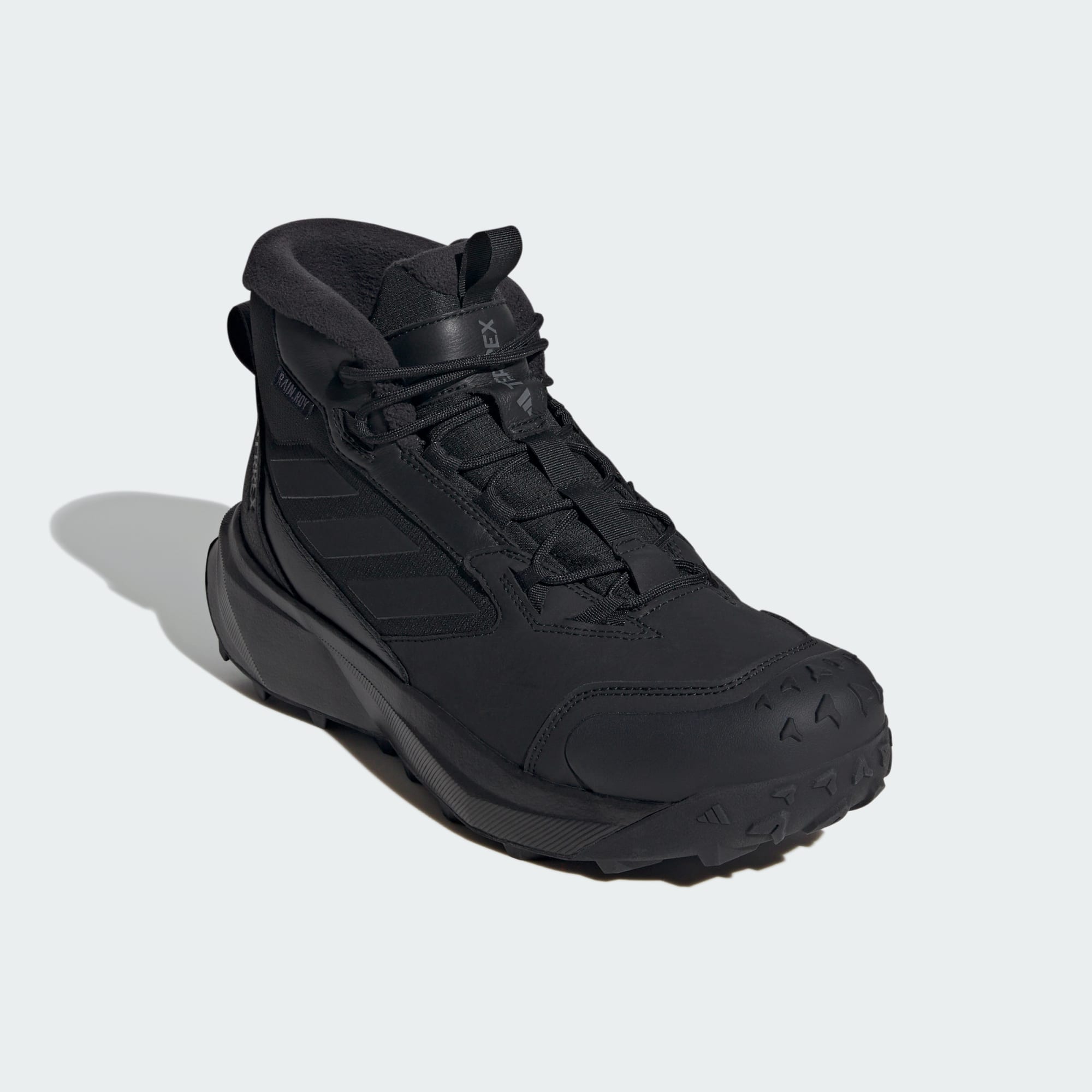 Oavsett om du vandrar i snöiga spår eller navigerar på slaskiga gator håller de här vintervandringskängorna från adidas Terrex fötterna varma och torra. De är utrustade med COLD.RDY och RAIN.RDY som skyddar dig i kalla och våta förhållanden så att du kan utforska vinterlandskap med komfort. Isolering med PrimaLoft® håller inne värmen så att fötterna håller sig varma när temperaturen sjunker. Den slitstarka ovandelen i läder vilar ovanpå en greppande yttersula i Continental™-gummi som gör dem till en favorit hela säsongen.