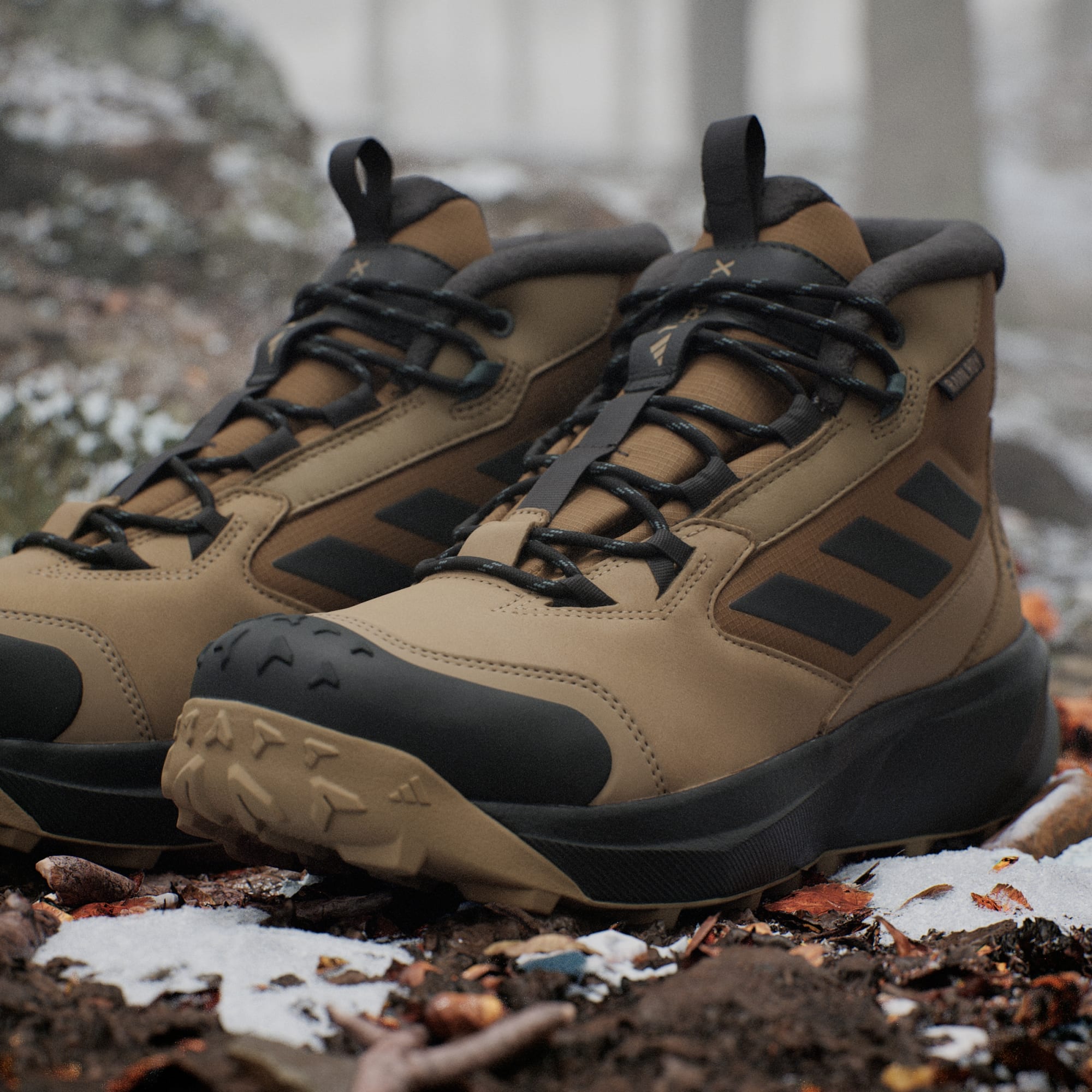 Oavsett om du vandrar i snöiga spår eller navigerar på slaskiga gator håller de här vintervandringskängorna från adidas Terrex fötterna varma och torra. De är utrustade med COLD.RDY och RAIN.RDY som skyddar dig i kalla och våta förhållanden så att du kan utforska vinterlandskap med komfort. Isolering med PrimaLoft® håller inne värmen så att fötterna håller sig varma när temperaturen sjunker. Den slitstarka ovandelen i läder vilar ovanpå en greppande yttersula i Continental™-gummi som gör dem till en favorit hela säsongen.