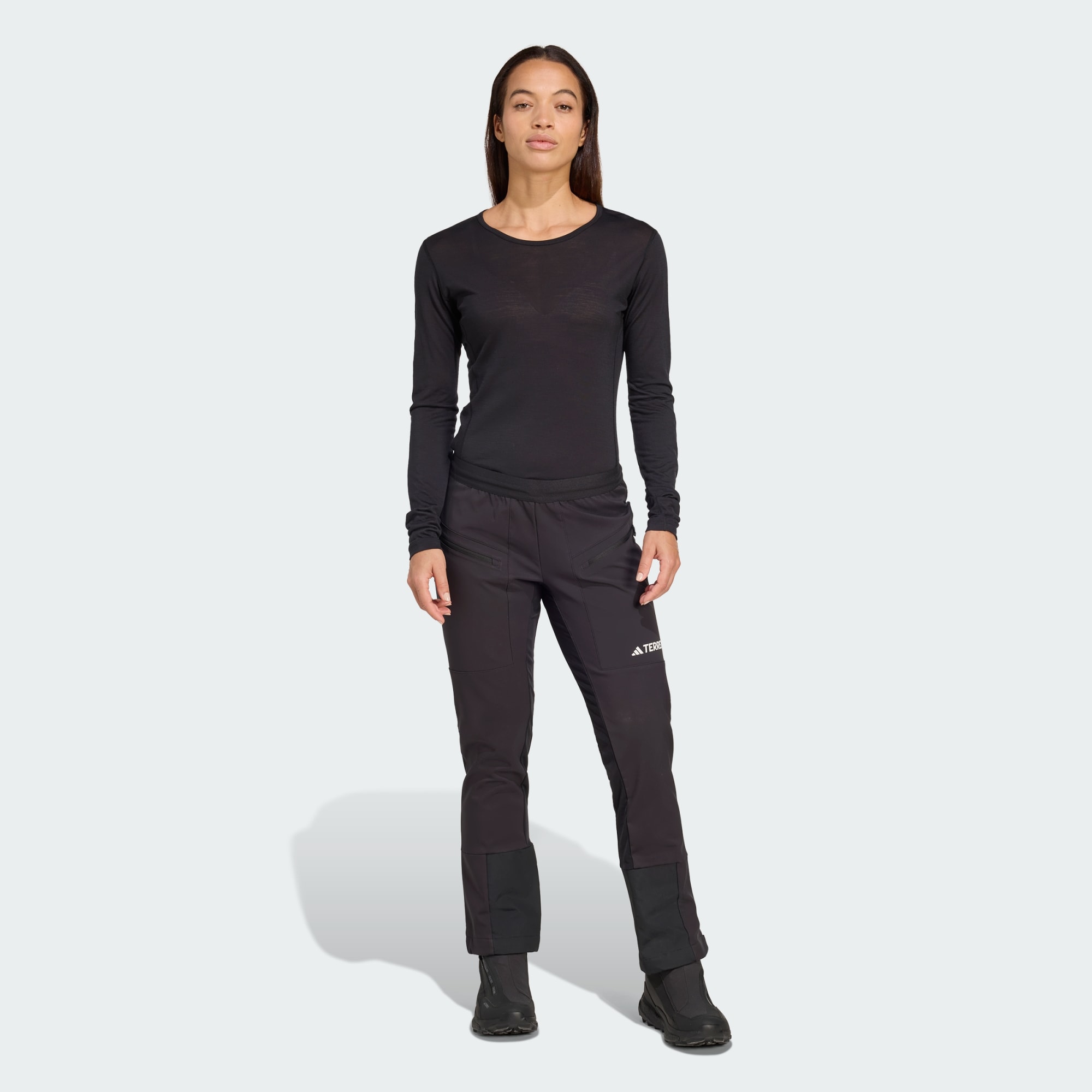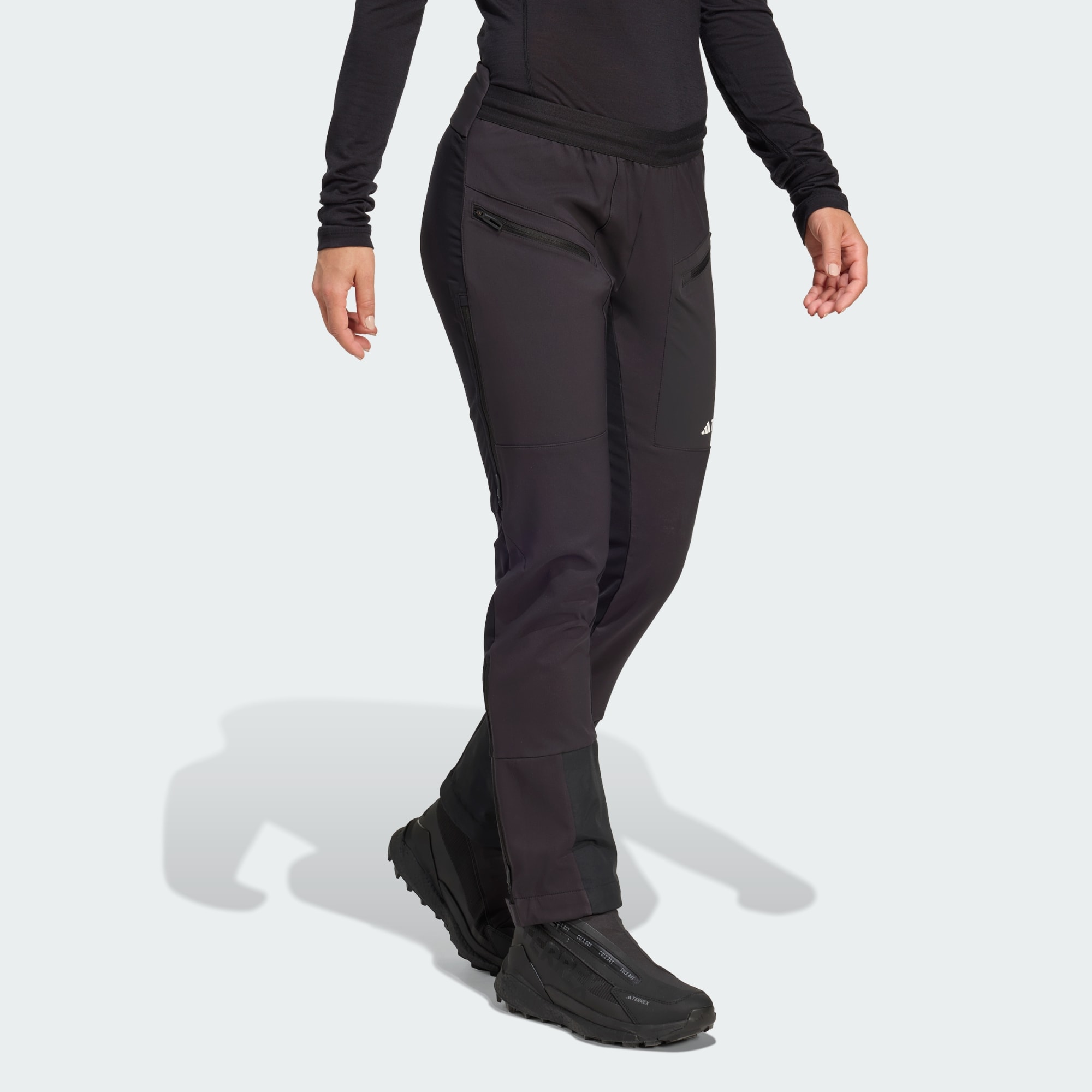 Med de här byxorna från adidas Outdoor rör du dig med maximal frihet, oavsett om du ska ut på en skidtur eller vintervandra. Tack vare den stretchvävda materialblandningen och den smala passformen får du full rörelsefrihet, så att du kan ta dig an dagar på språng på alla möjliga sätt. Ventilerande partier möjliggör temperaturreglering under tuffare dagar, och genom att använda knäppningen i bensluten kan du justera passformen beroende på om du vill använda skalbyxor eller inte. Det förstärkta skyddet vid muddarna tål slitage från skidkanterna och pjäxorna.