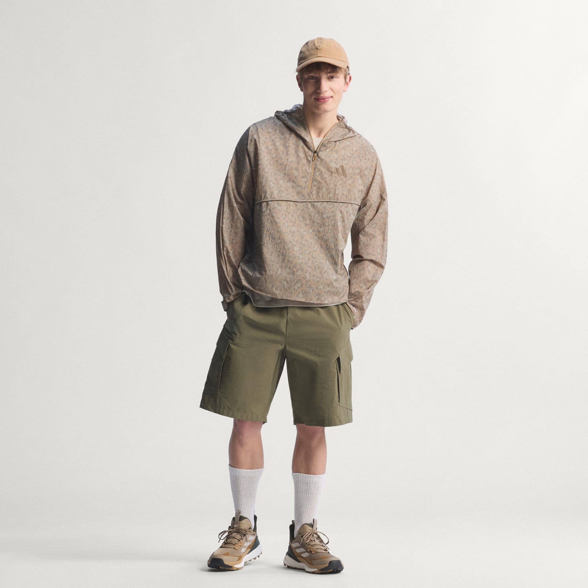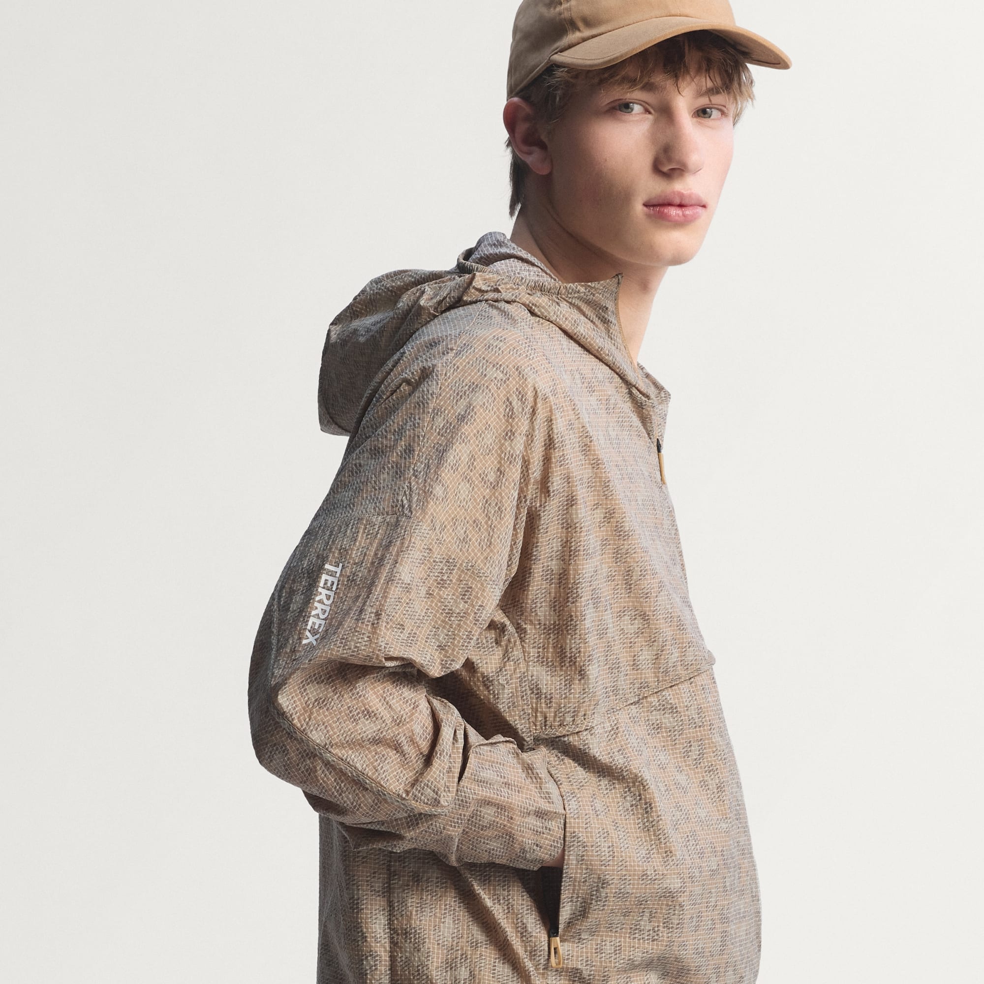 Terrex Xploric Clima365 vindanorak med tryck är skapad för vandring och redo för utomhusaktiviteter. Jackan blandar färgstark stil med praktiska funktioner för oförutsägbart väder.