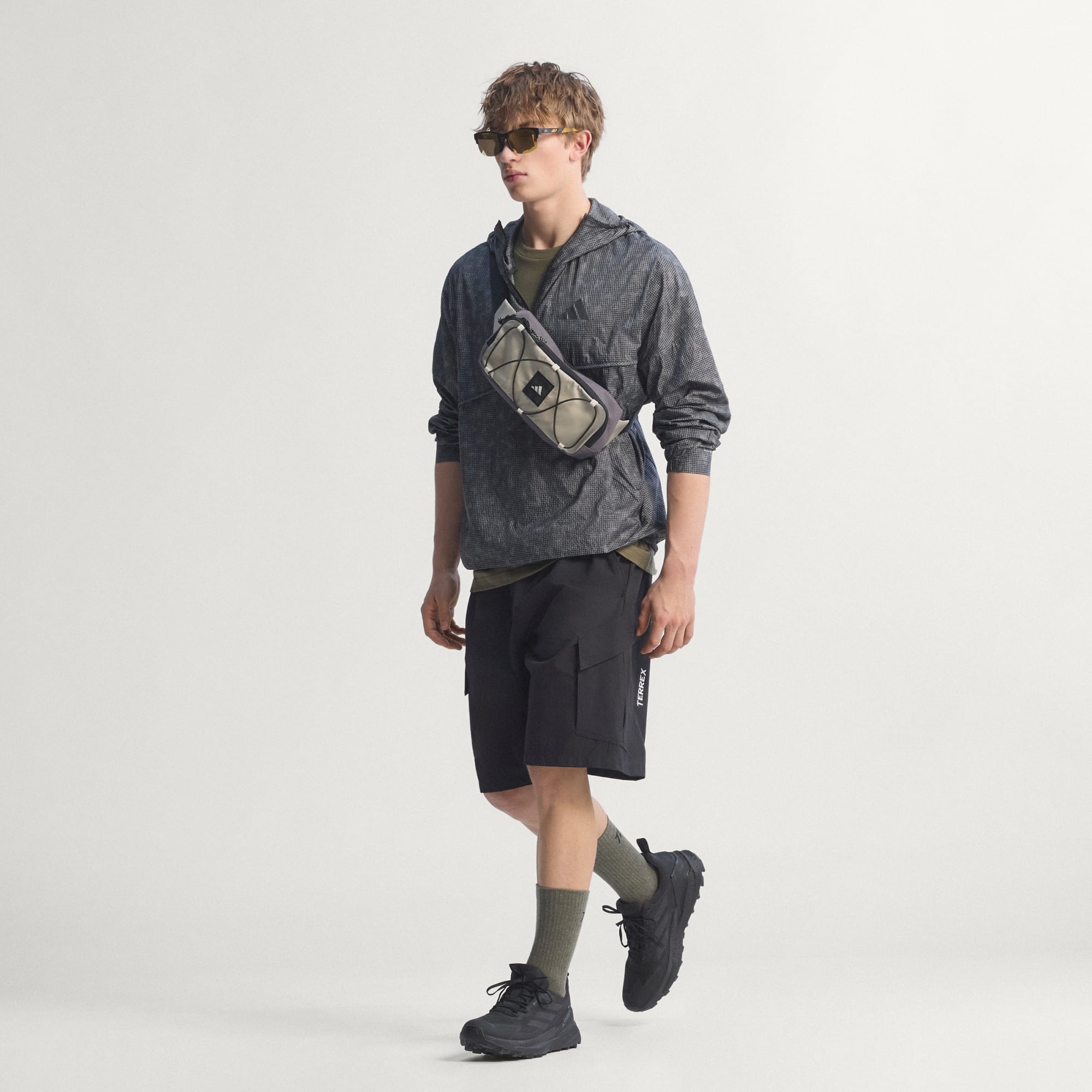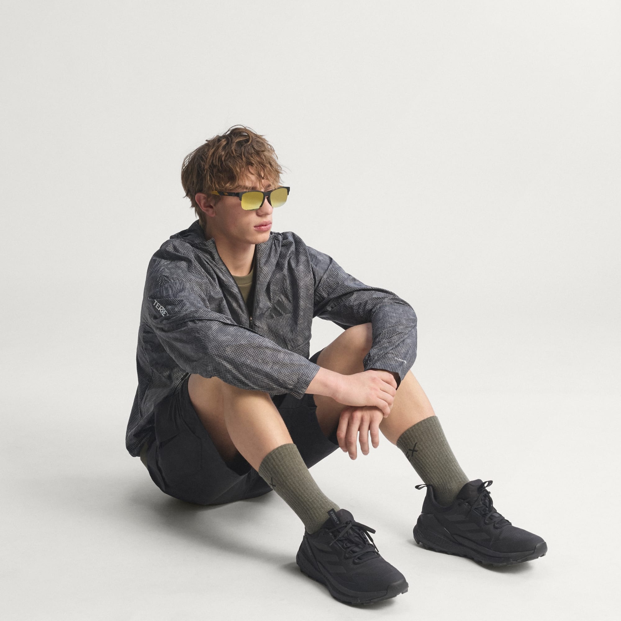Ta ett självsäkert kliv ut i vildmarken iklädd Terrex Xploric Clima365-vindanorak med tryck. Den passar lika bra i bergen, som vid havet eller i skogen.