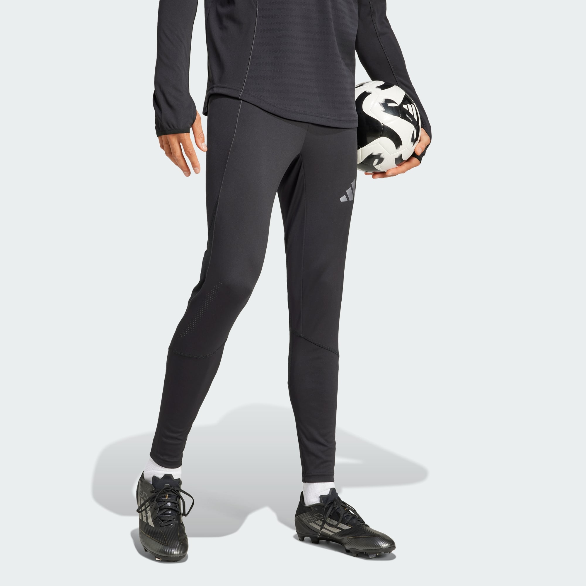 Högpresterande fotbollsträningsbyxor gjorda i återvunnet material.