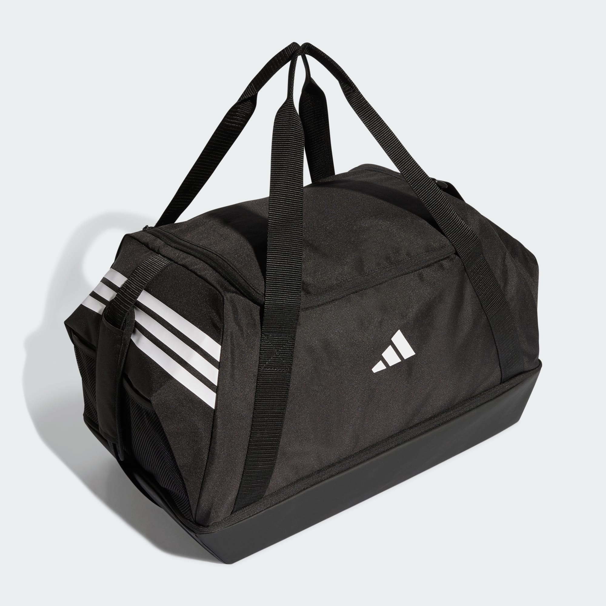 Tiro-väskan medium med bottenfack är designad för dig som lever ett aktivt fotbollsliv. Väskan har ett stort huvudfack med dragkedja för praktisk och säker förvaring av dina saker. Ett separat bottenfack gör det möjligt att hålla skor eller våta kläder separata från den övriga packningen. Väskan är tllverkad av slätvävt tyg som är slitstarkt nog att klara av påfrestningarna som träningar och resor innebär. Den här praktiska duffelväskan från adidas har en Performance-logga i kontrasterande färg för en autentisk fotbollslook.