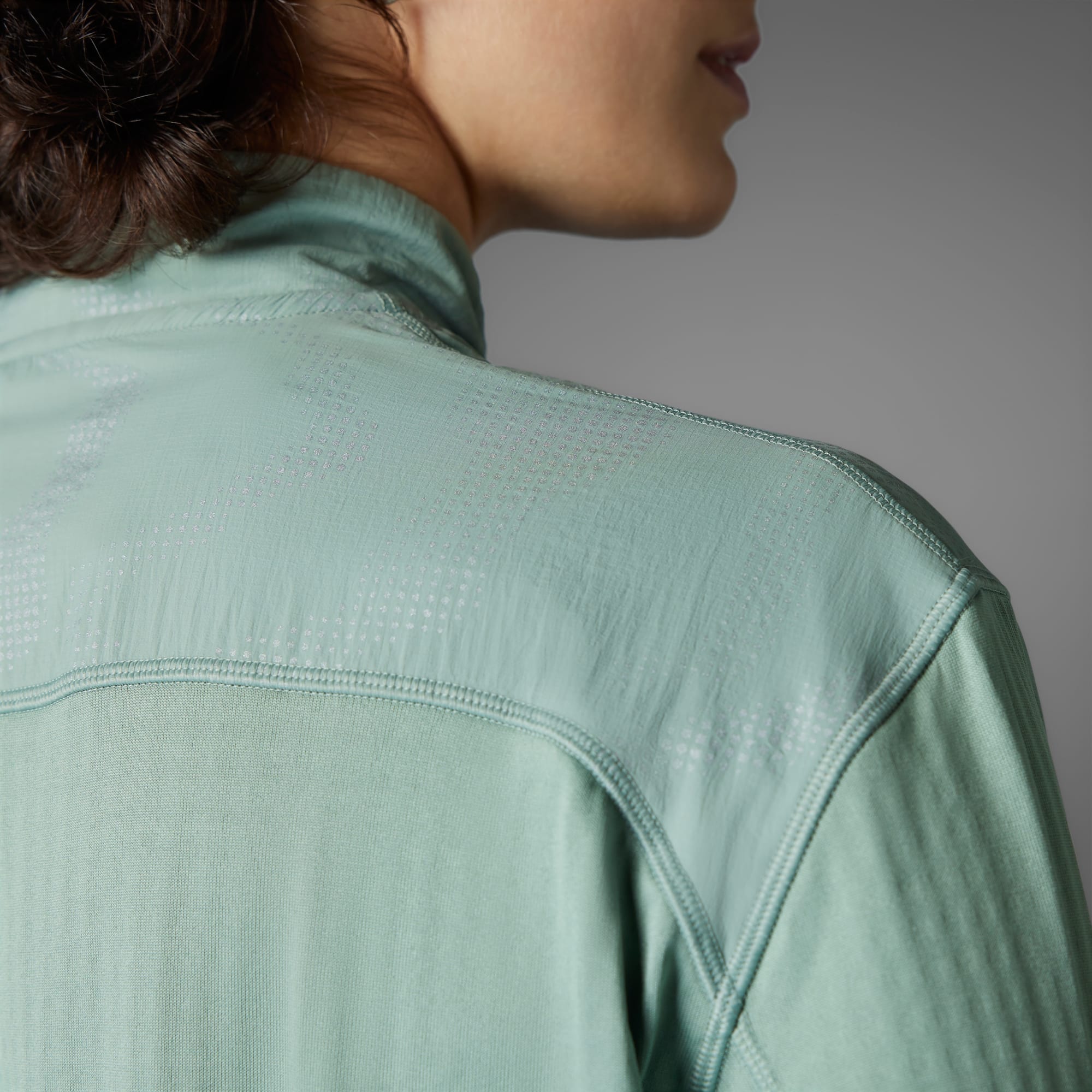En reflekterande löpartopp med halv dragkedja, delvis tillverkad med återvunnet material.