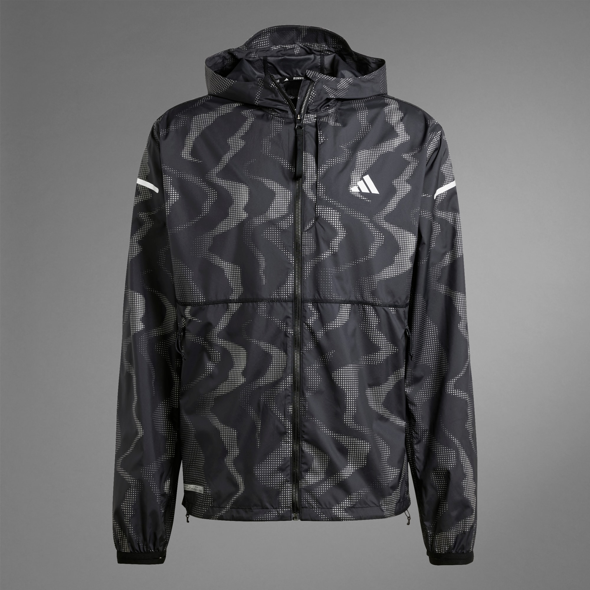 Ta dig an blåsiga löprundor med självförtroende. Den här löparjackan med WIND.RDY-teknologi ger dig kraft och komfort i svalt och blåsigt väder. Den justerbara huvan och fållen gör det möjligt att anpassa passformen, och de elastiska muddarna stänger ute kylan. I fickorna med dragkedja kan du förvara viktiga småsaker. Den här produkten är gjord i 100 % återvunnet material. Genom att återanvända material som redan skapats bidrar vi till att minska avfall, minska vårt beroende av ändliga resurser och minska våra produkters miljöavtryck.