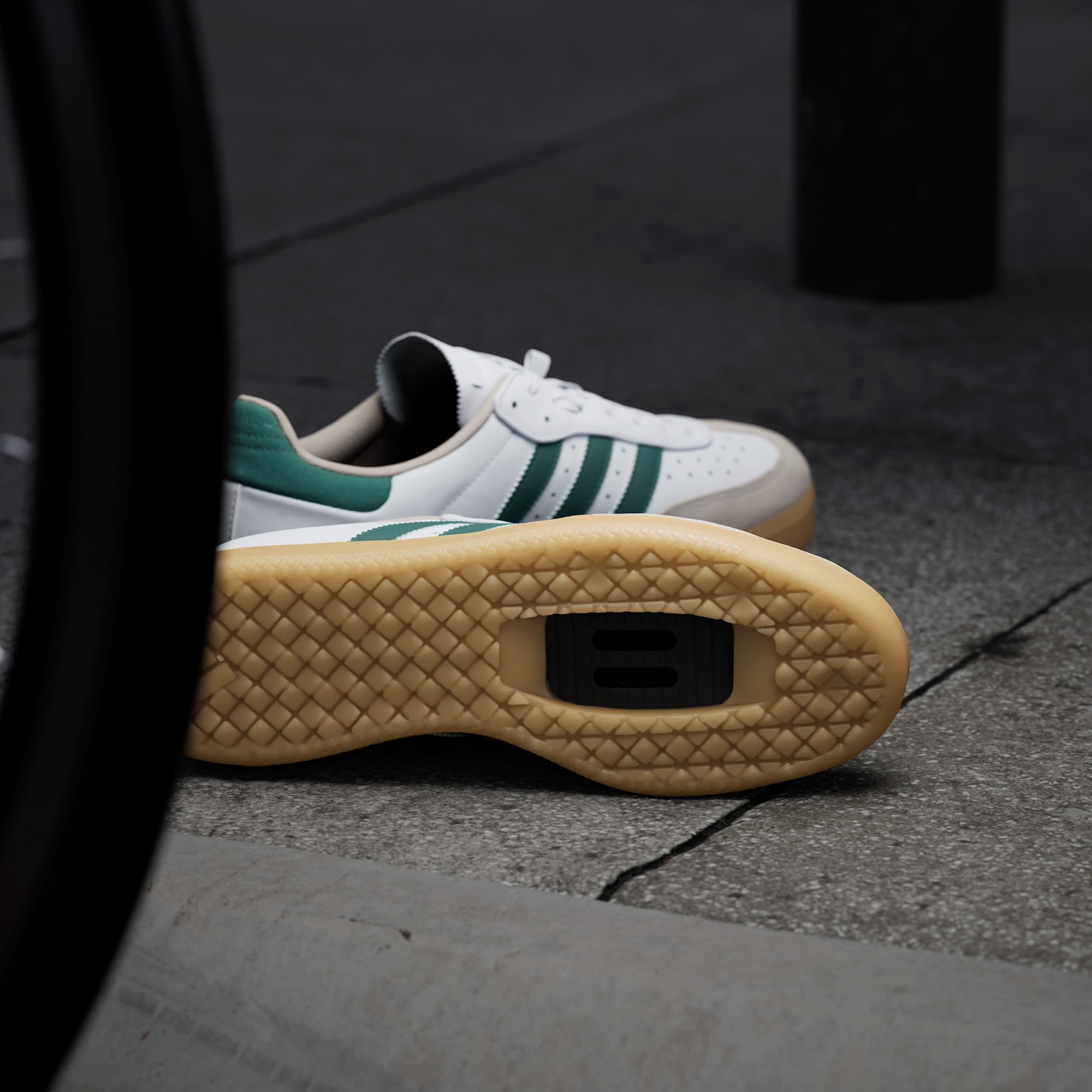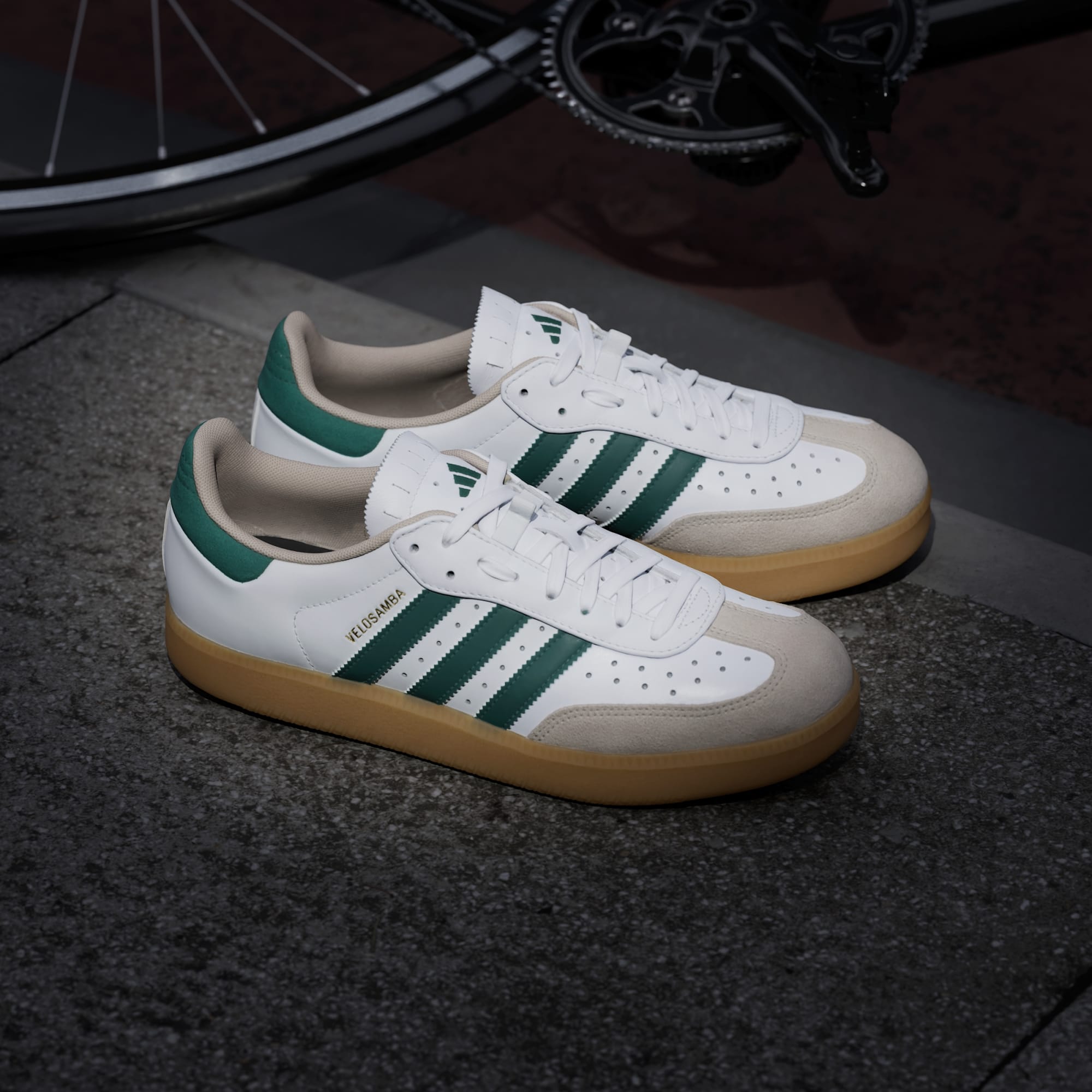 Cykla till jobbet med ikonisk Samba-stil från adidas på fötterna. Cykelskor Velosamba Leather har en diskret stil och är designade för avslappnade turer och pendling. De är kompatibla med tvåhålsinfästning och har en två tredjedelar lång platta i mellansulan som gör den fastare i framfoten för effektiv cykling och är samtidigt bekväm med naturlig flex när du går. Reflekterande 3-Stripes ser till att du syns i mörkret. En elastisk ögla håller snörena på plats.