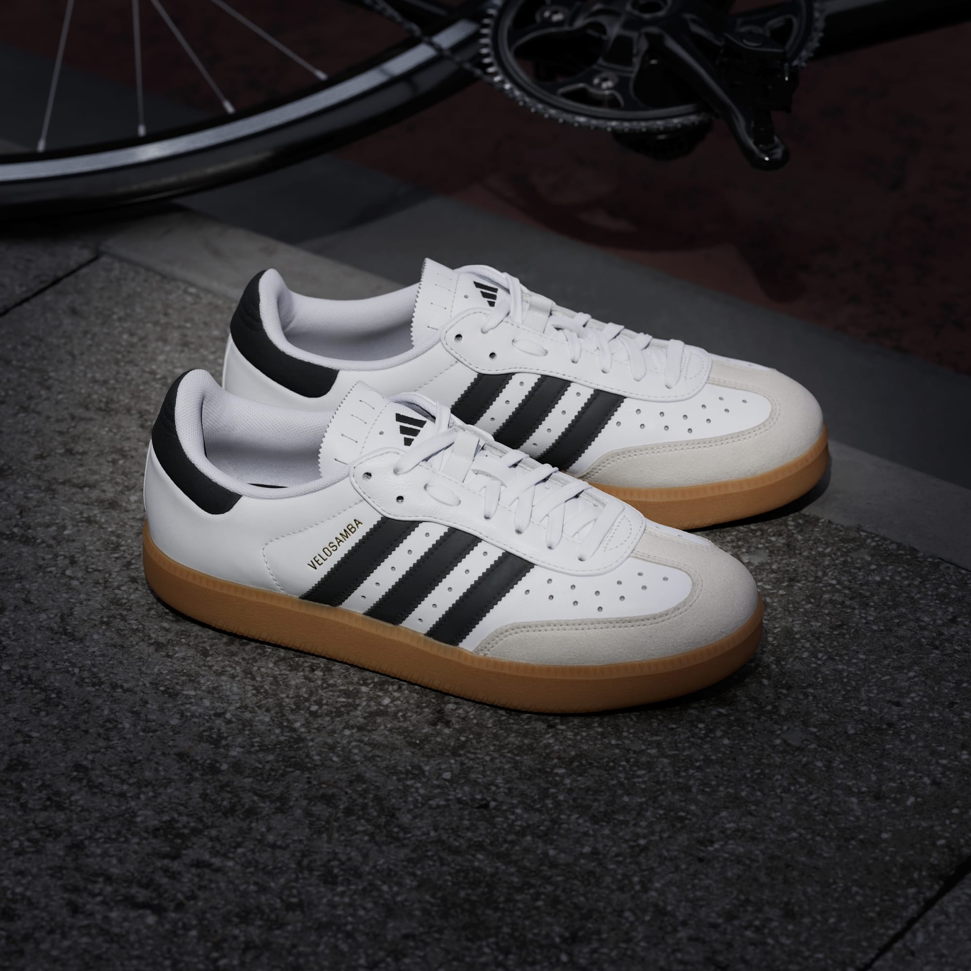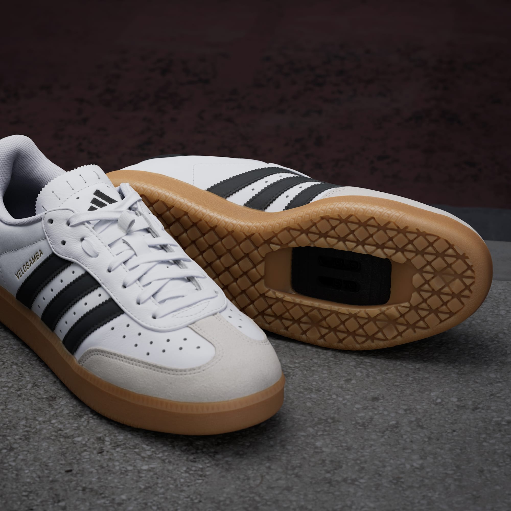 Cykla till jobbet med ikonisk Samba-stil från adidas på fötterna. Cykelskor Velosamba Leather har en diskret stil och är designade för avslappnade turer och pendling. De är kompatibla med tvåhålsinfästning och har en två tredjedelar lång platta i mellansulan som gör den fastare i framfoten för effektiv cykling och är samtidigt bekväm med naturlig flex när du går. Reflekterande 3-Stripes ser till att du syns i mörkret. En elastisk ögla håller snörena på plats.