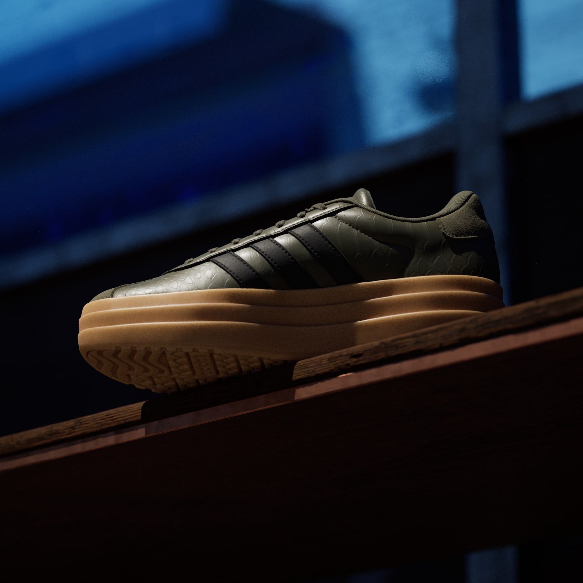 Skorna har en ovandel i syntetmaterial och läder för slitstark komfort. adidas ikoniska T-tådesign och den höga sulan ger skon en distinkt profil, medan snörningen garanterar en säker passform.