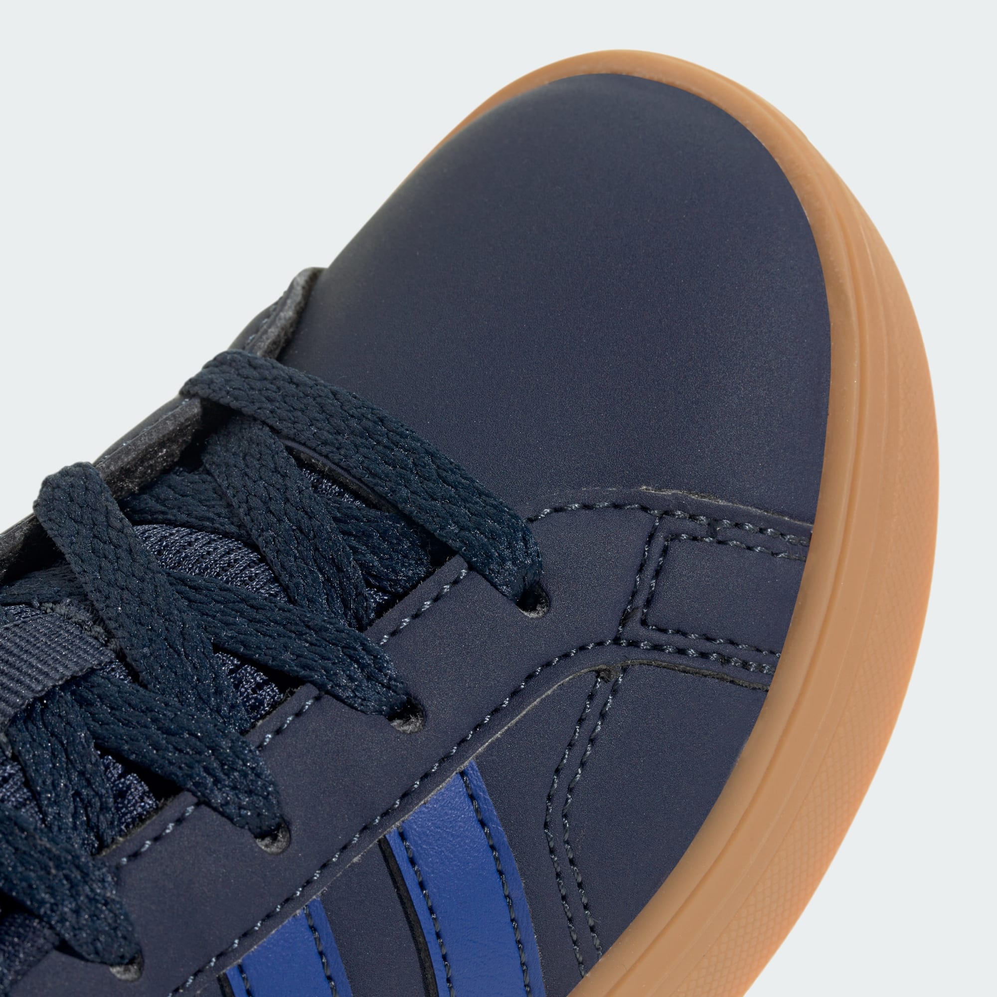 De här adidasskorna för barn är redo för alla typer av äventyr. Den lätta ovandelen är fodrad för en mjuk känsla mot foten. Koppsulan i gummi av typen non-marking gör att barnen kan röra sig obehindrat oavsett om de jagar bollen över inomhusplanen eller i parken. Ovandelen är gjord i en serie återvunna material och består av minst 50 % återvunnet innehåll. Den här produkten är en av våra lösningar för att bidra till att sätta stopp för plastavfallet.