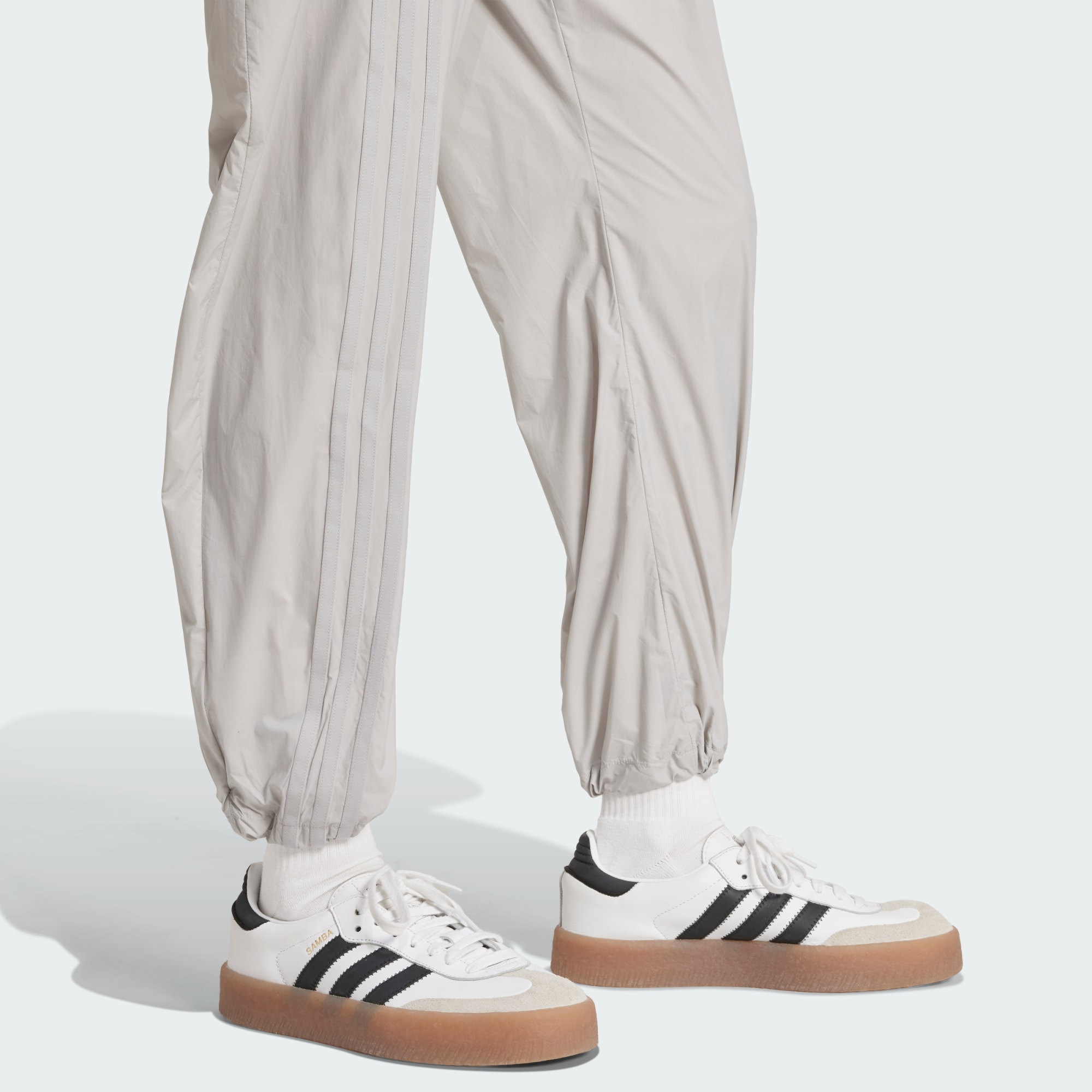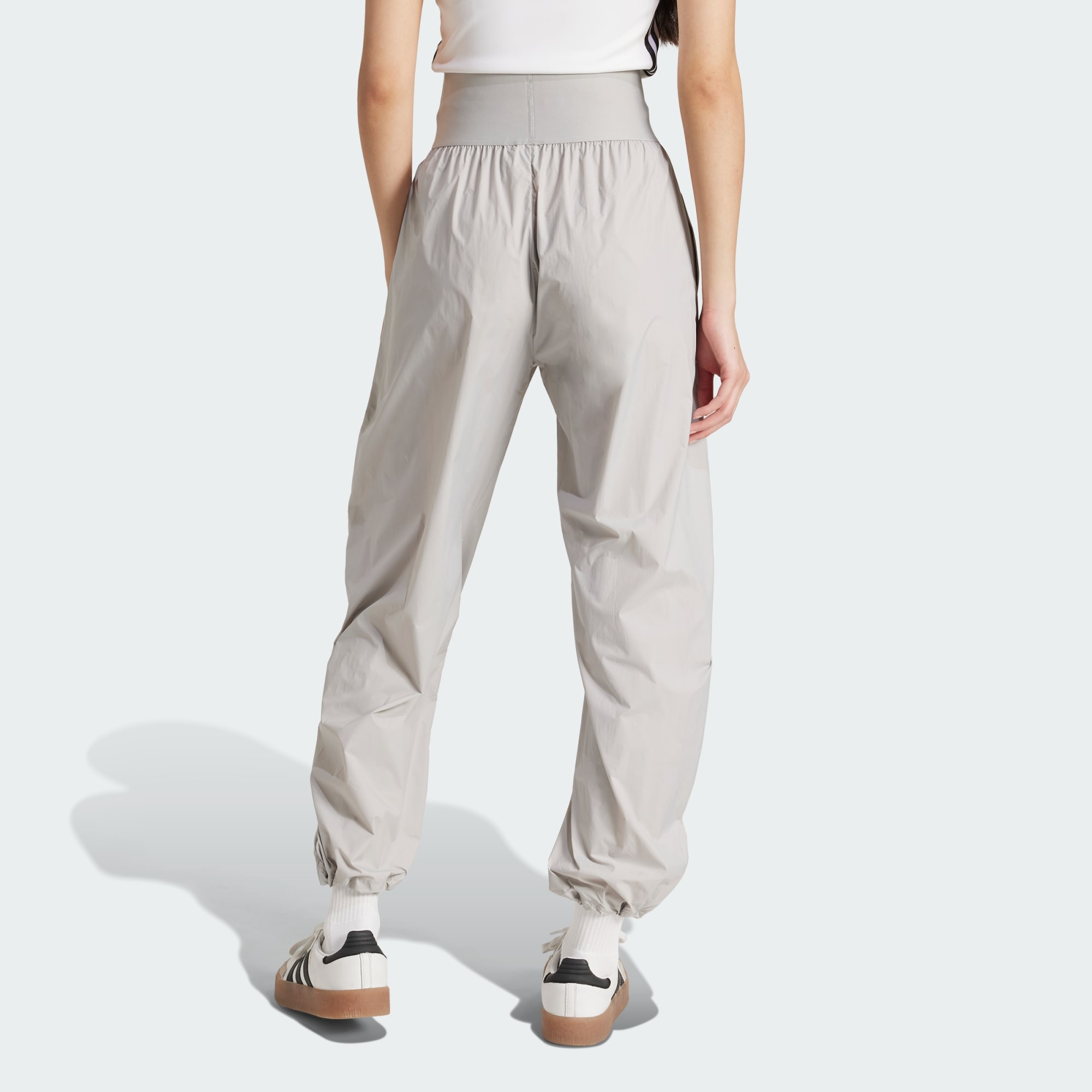De här byxorna från adidas är ett vardagsplagg med en förfinad twist som kan kläs upp eller ner. De har en lös passform och en elastisk midja med Trefoil-detalj. Justera formen med de elastiska dragskorna i fållarna. Den här produkten är gjord med 100 % återvunnet material. Genom att återanvända material som redan skapats bidrar vi till att minska avfall, minska vårt beroende av ändliga resurser och minska våra produkters miljöavtryck.