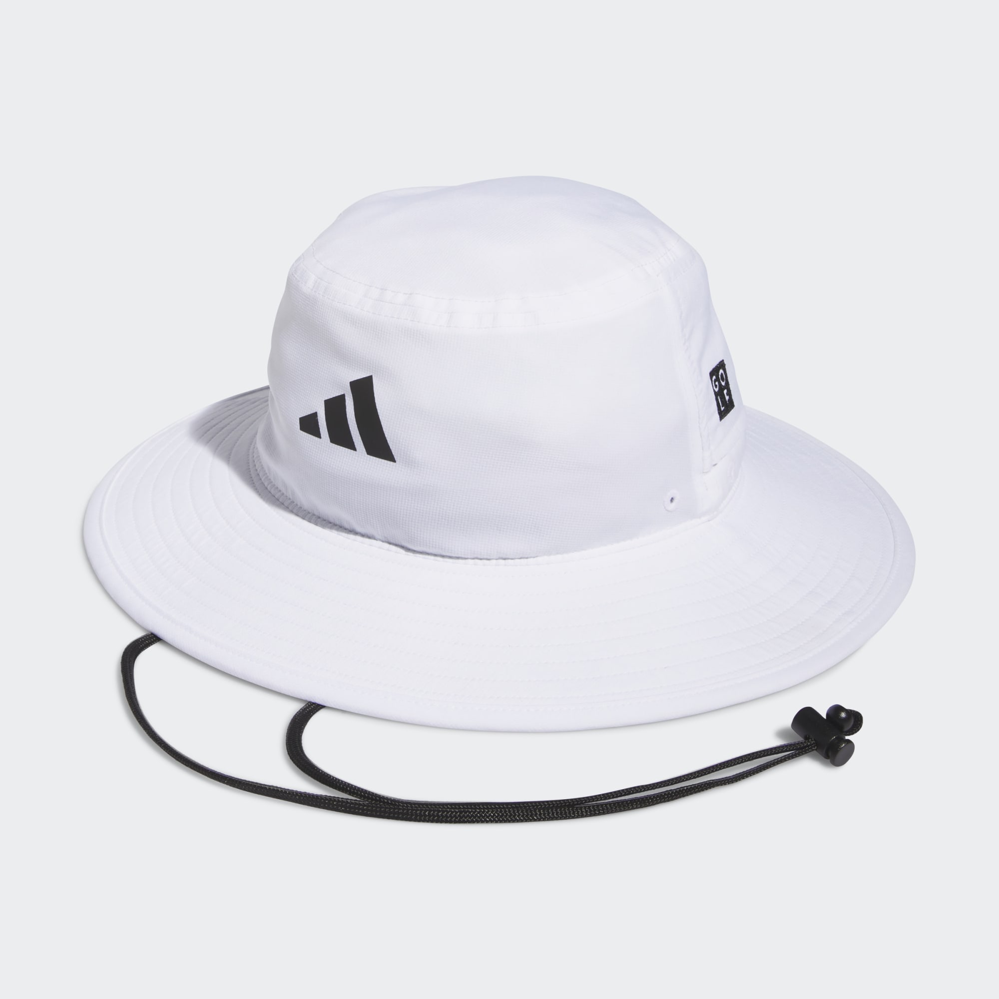 Den här golfhatten från adidas skuggar skönt på fairwayen. Det breda brättet håller solens strålar borta från ansikte och hals och AEROREADY absorberar fukt för att hålla dig torr. Ventilerande 3-Stripes baktill ger en sval känsla. Justera dragskon när vinden friskar i.