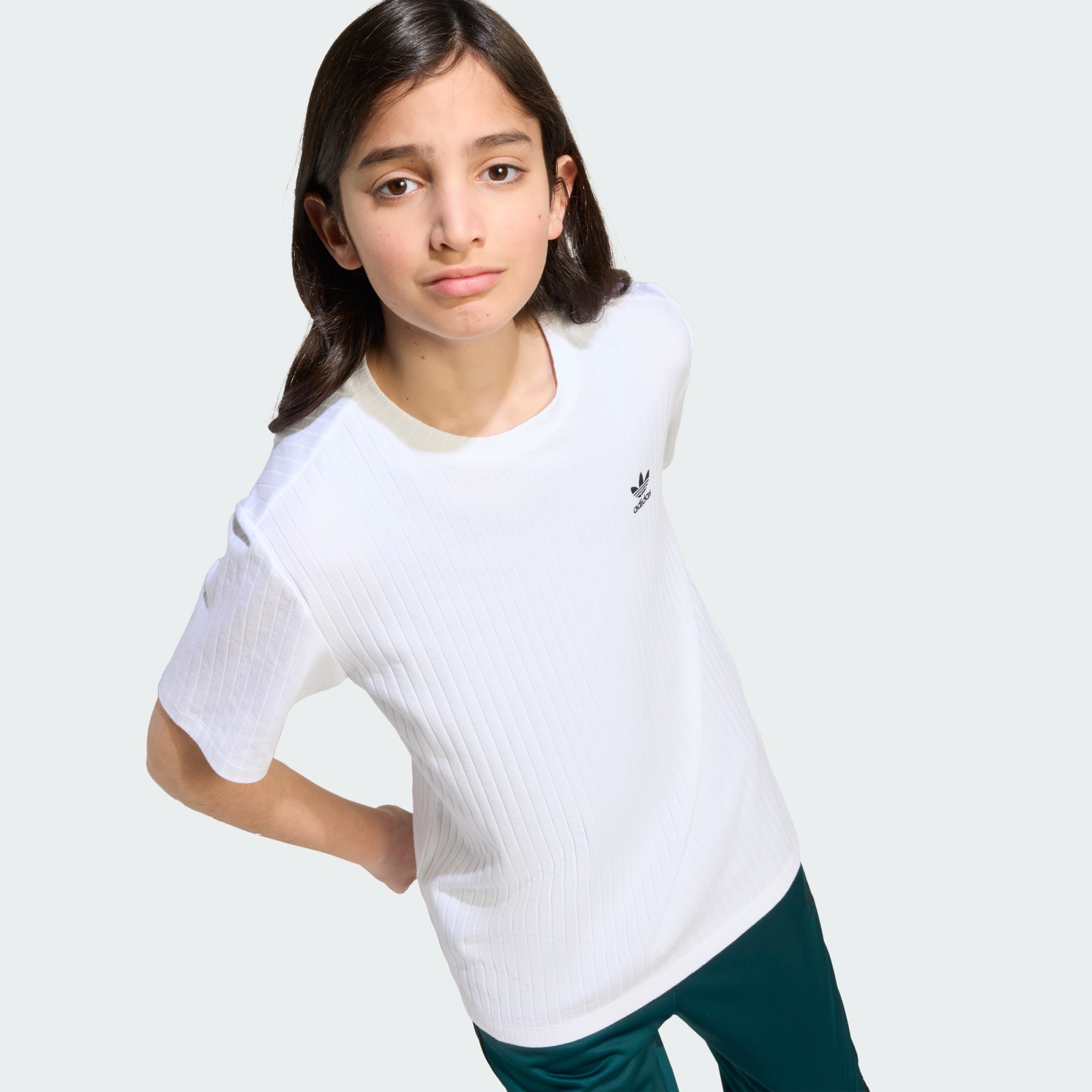 Den här kortärmade adidaströjan för juniorer är ett måste i vardagen. Den är gjord i mjukt, ribbat material och passar perfekt till allt från jeans till joggingbyxor. Den lösa passformen ger rörelsefrihet och den lilla Trefoil-loggan på bröstet visar din stolthet över märket.