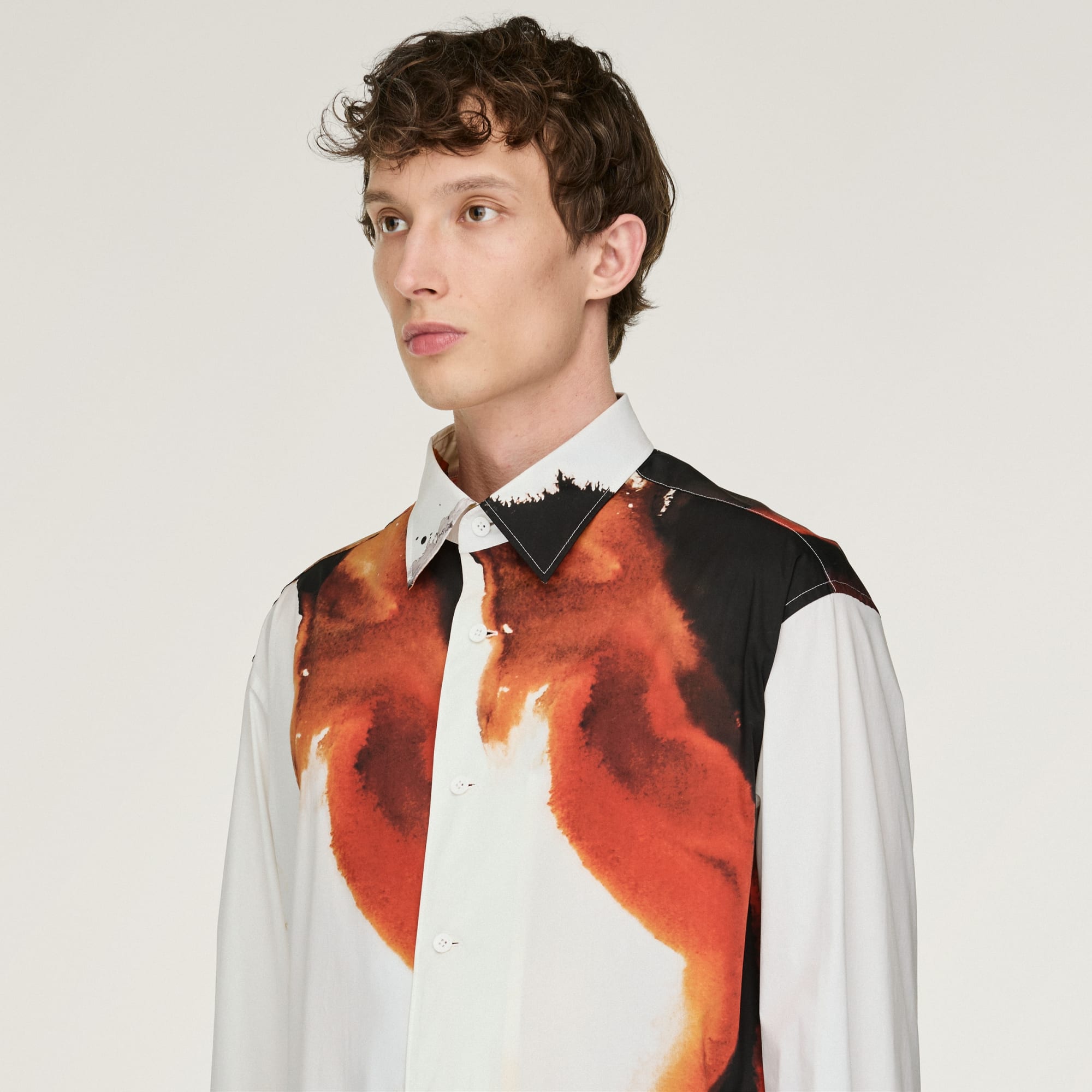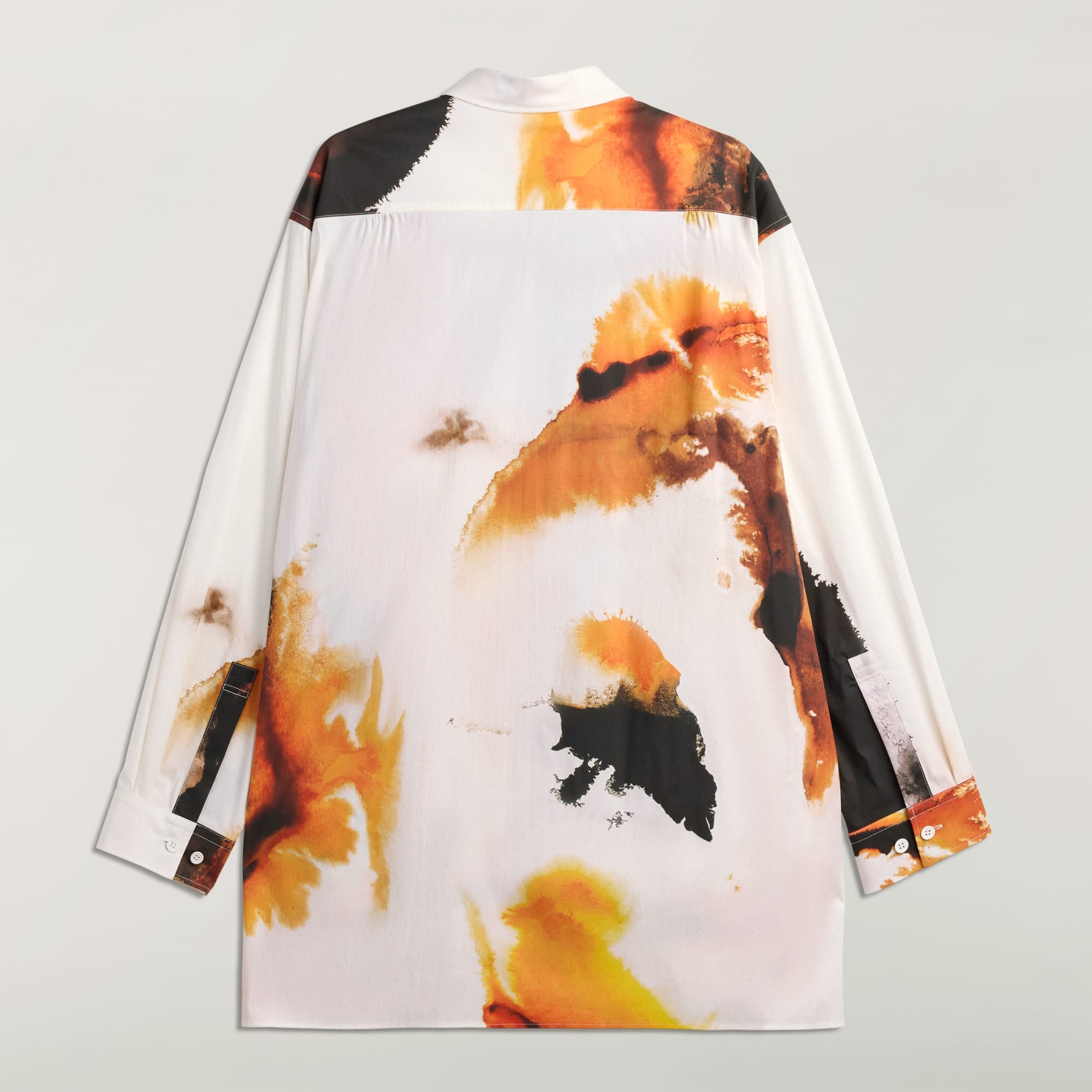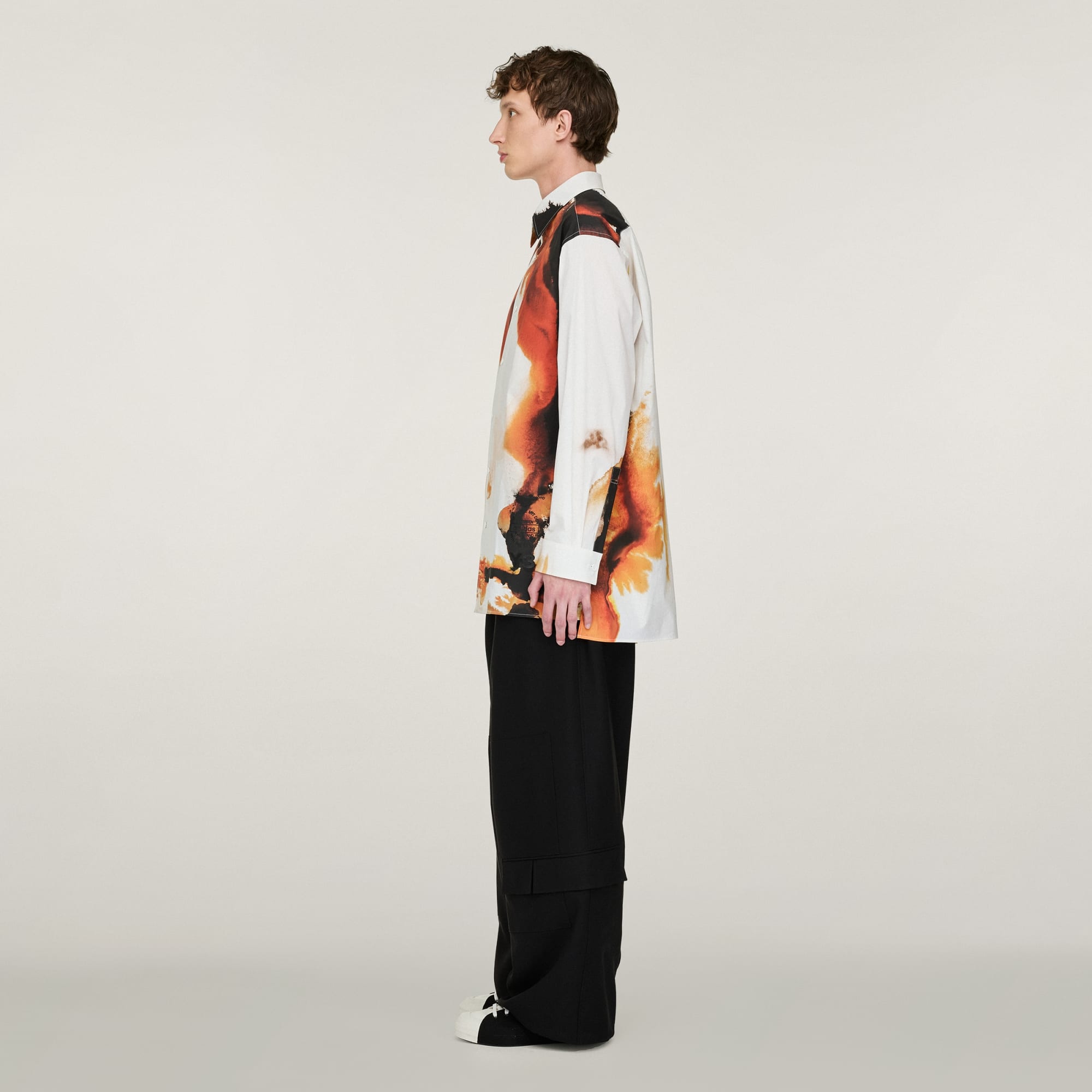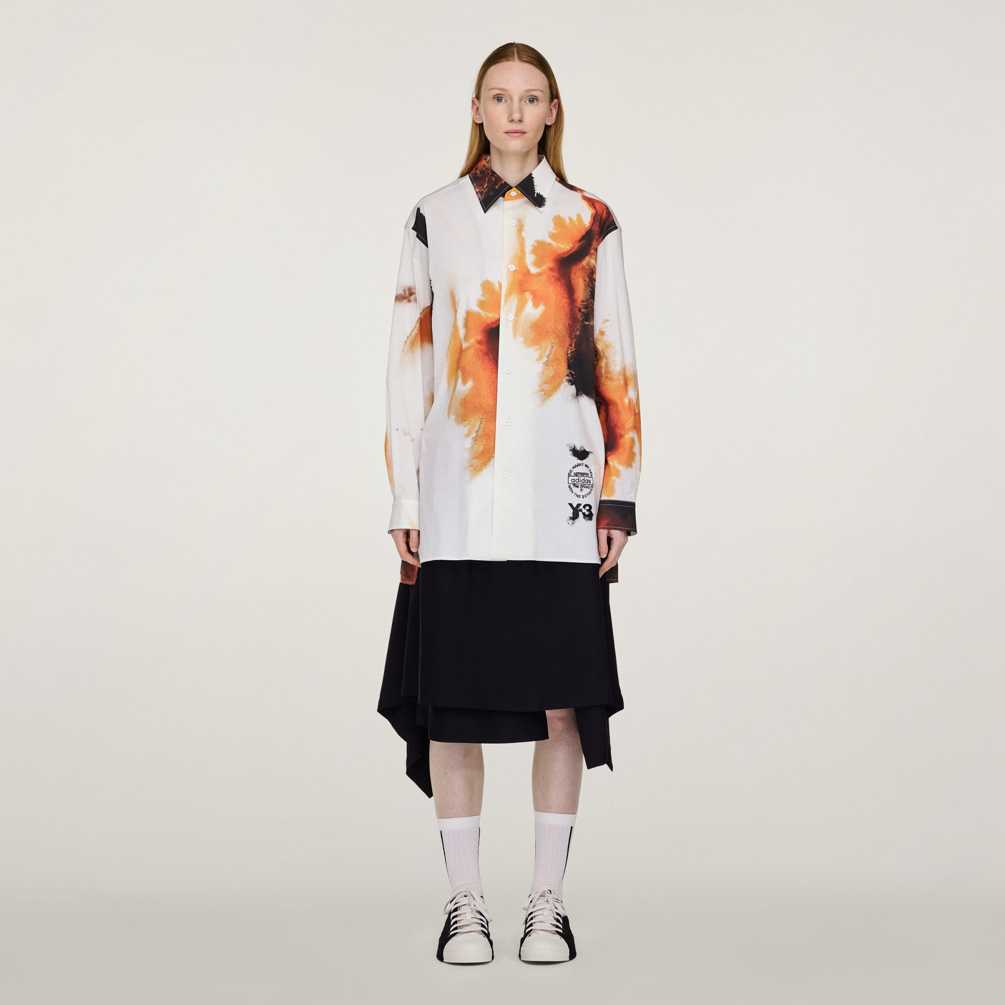Y-3 AOP Skjorta med uttrycksfull stil. Tyget i bomullsblandning känns mjukt men ändå elegant och designen fulländas av sofistikerade detaljer som krage och justerbara muddar med knappar. Det unika och snygga bärnstensfärgade trycket med diskreta gyllene nyanser och fylliga orange och bruna toner uttrycker värme, energi och transformation.