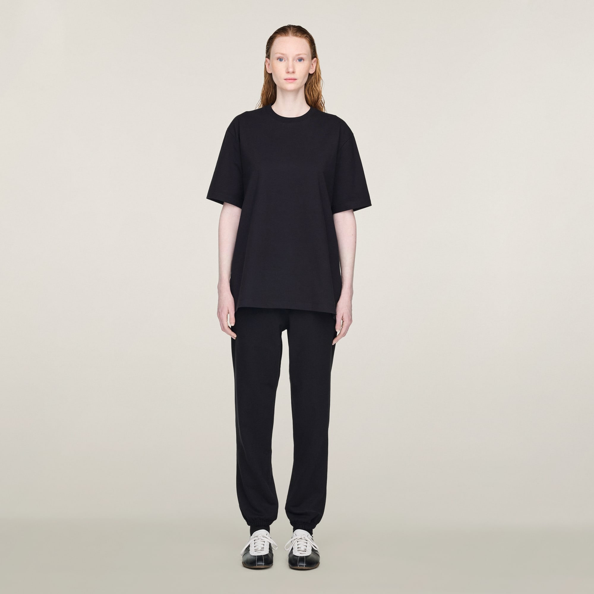 Den här modellen är 186 cm lång och bär storlek M. Omkretsen runt bröstet är 91 cm och runt midjan 68 cm.