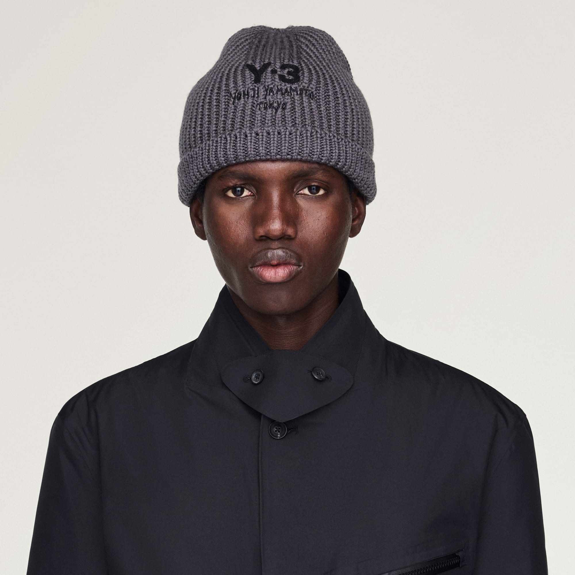 Y-3 Grovstickad mössa är tillverkad av merinoull, med en snygg rullad kant och en mjuk, mysig känsla. Den har ett broderat Y-3-märke i filt och broderad Yohji Yamamoto-design.