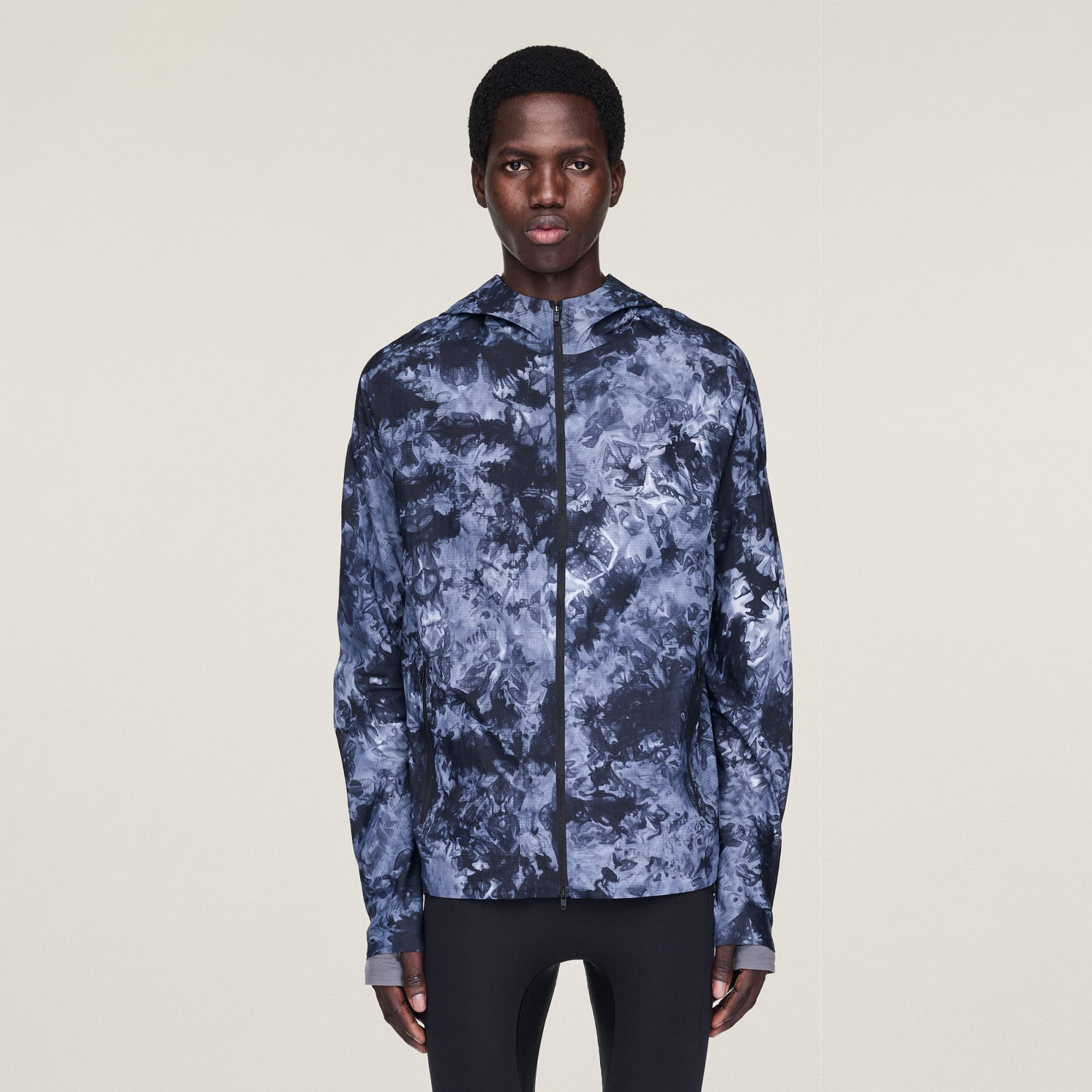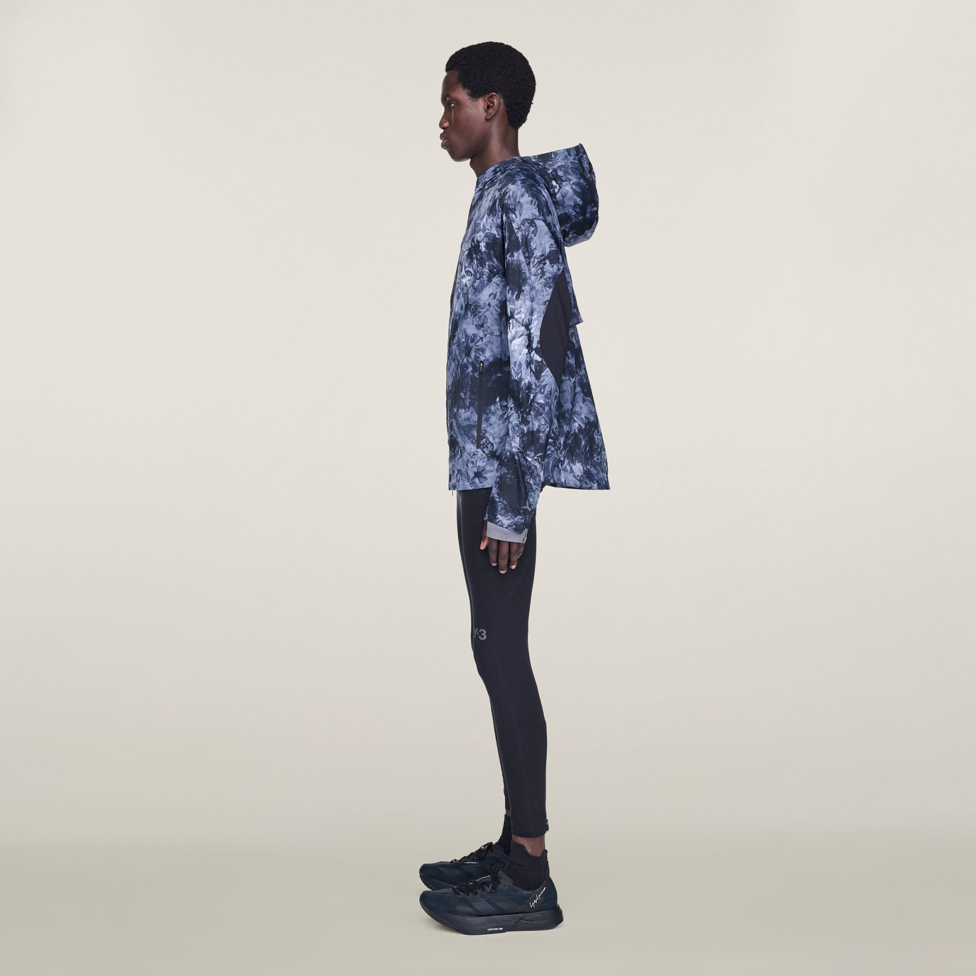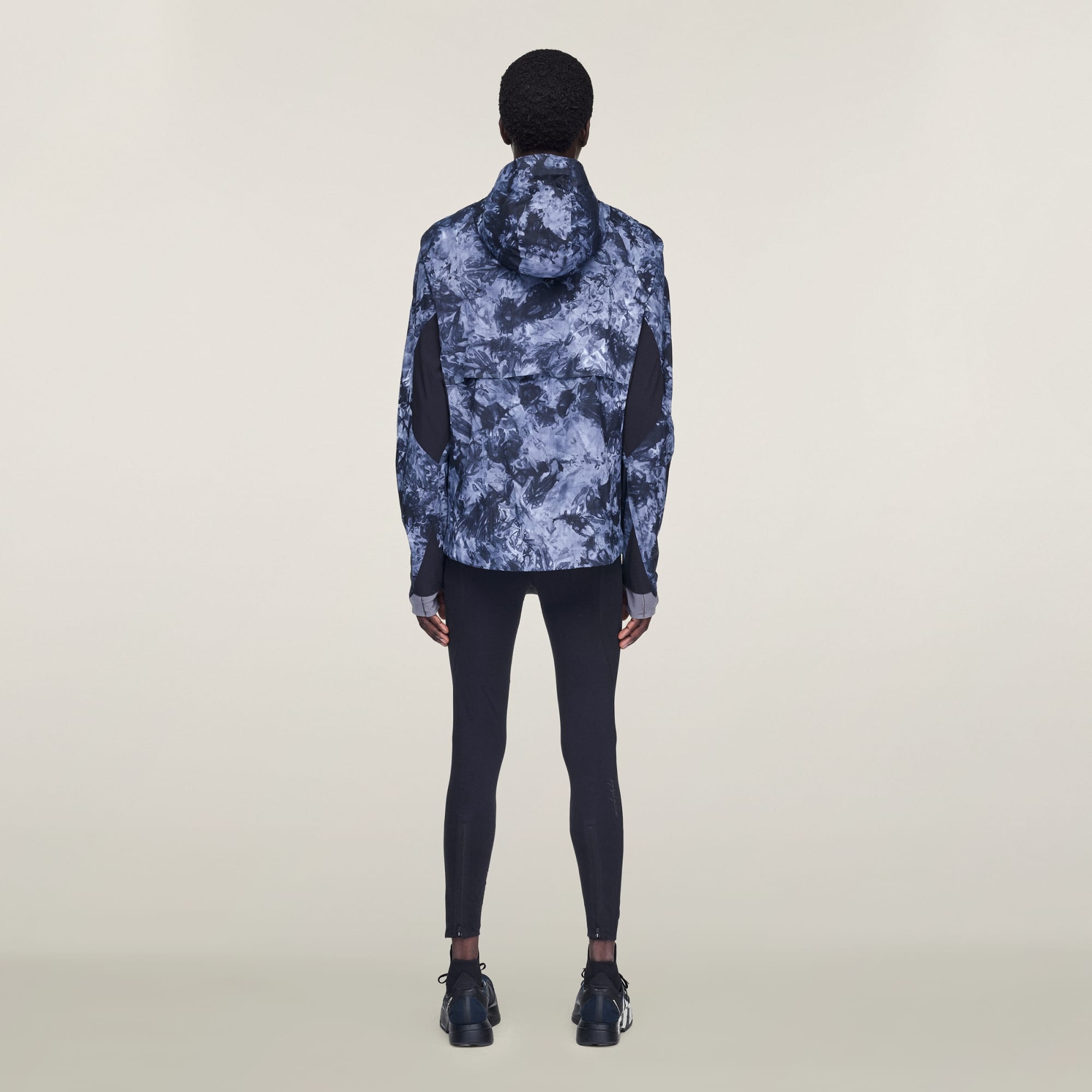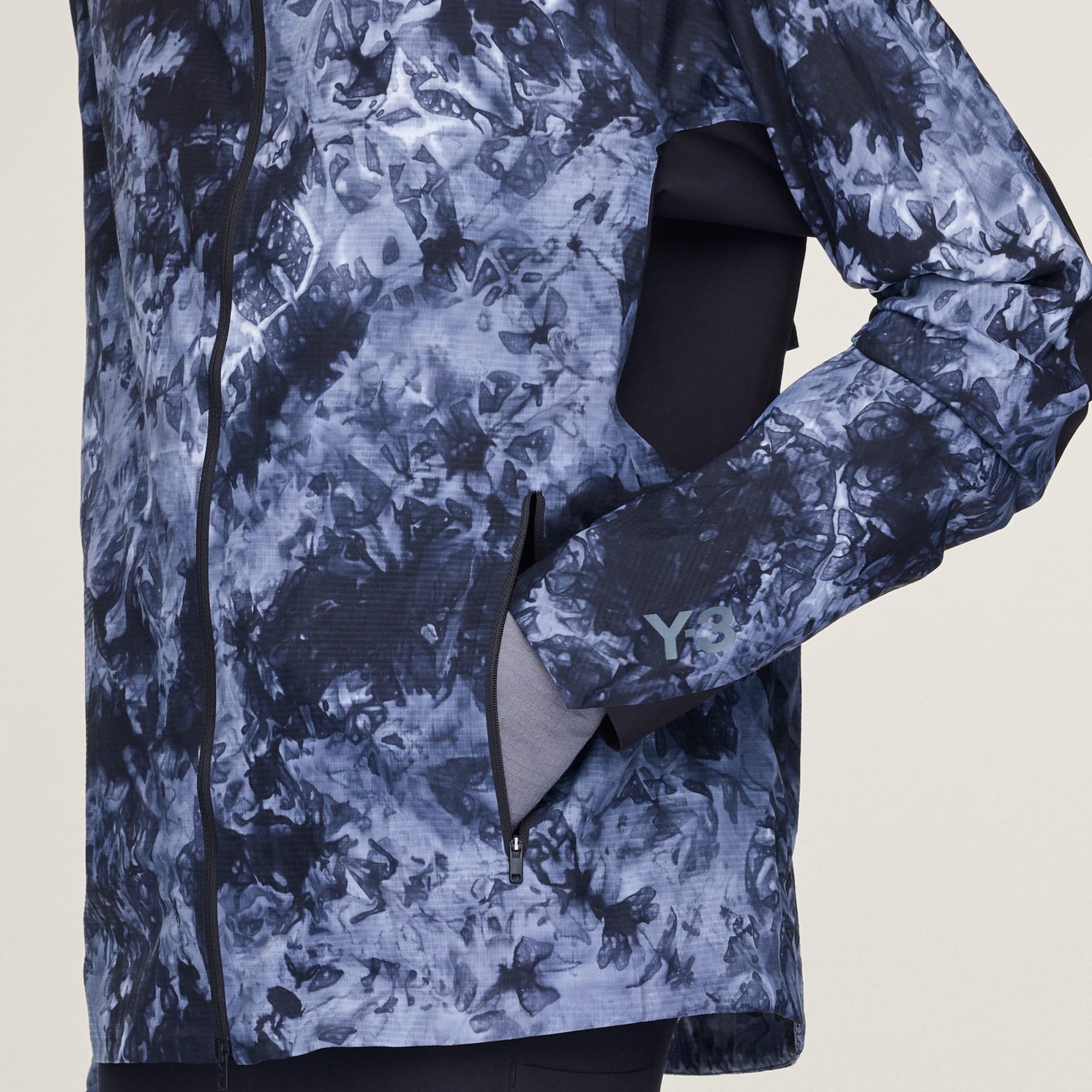 En jacka med heltäckande spraytryck och huva, från Y-3.