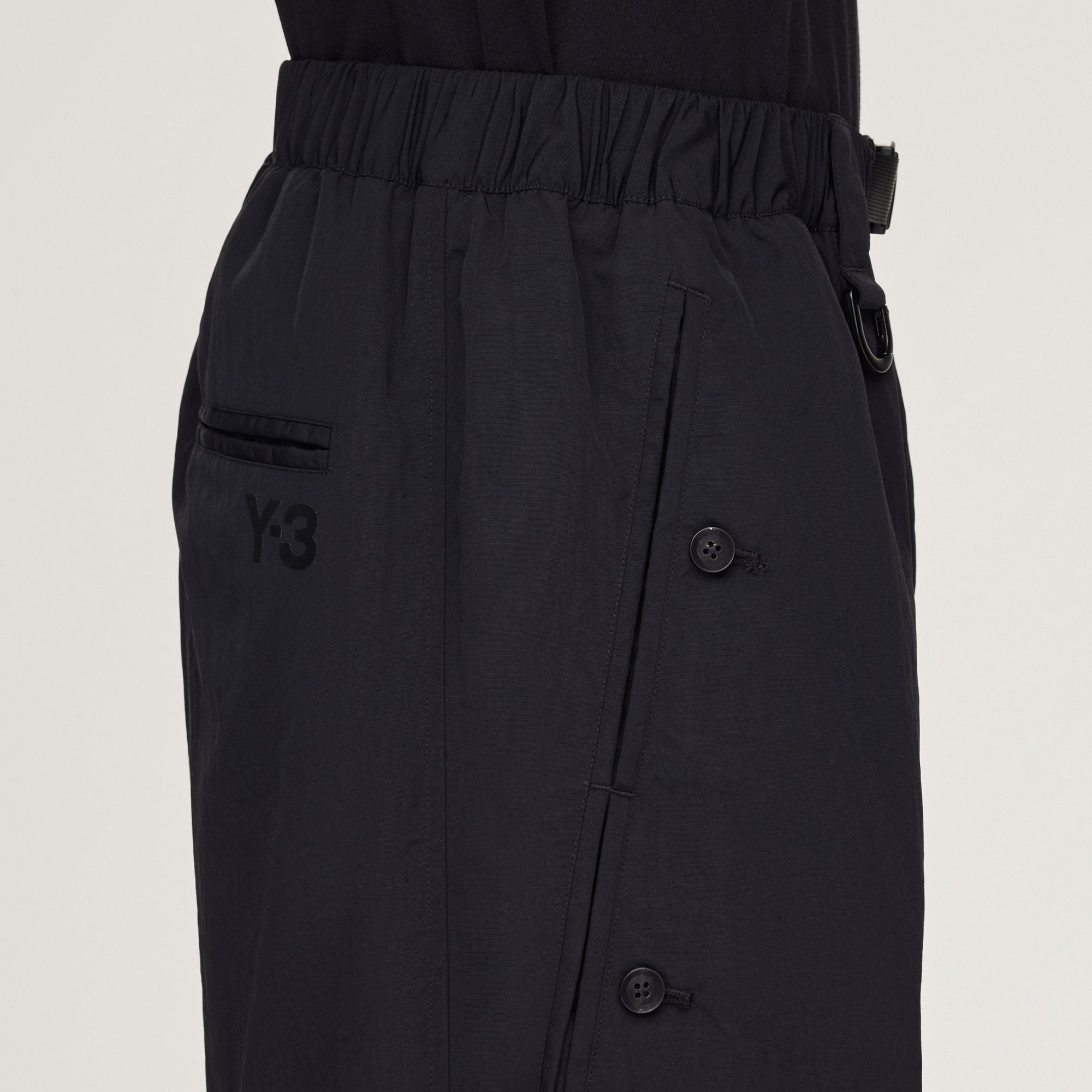 Med Y-3 Nylon byxor i sportklädeskollektionen från det legendariska boutiquemärket möts funktion och mode. De är tillverkade av smidig och slitstark nylon och har gylf med dragkedja och knapp, ett integrerat bälte och uppvikbara muddar som gör att du kan anpassa passformen. Praktiska fickor och D-ringclip håller det viktigaste på plats.