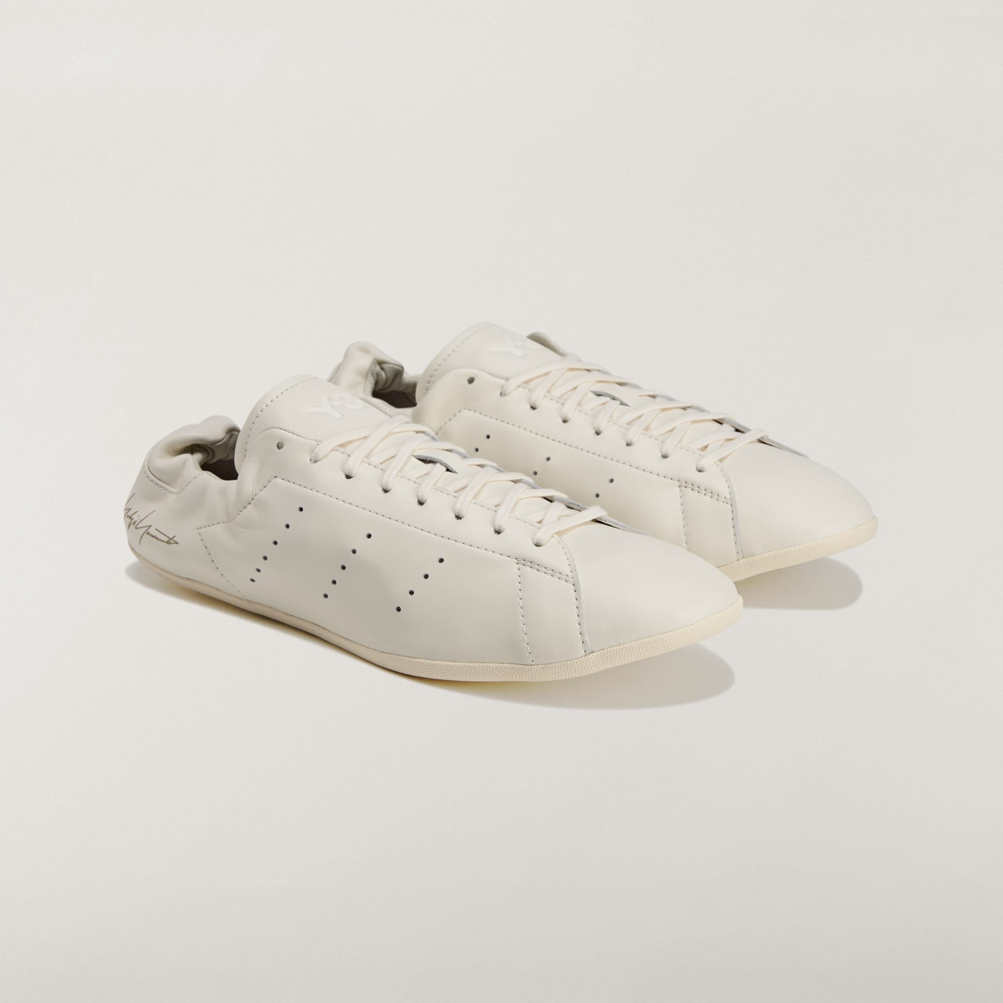 Den lasergraverade Yohji Yamamoto-signaturen på hälen och Y-3-logotypen på plösen är subtila referenser till konstnärskapet bakom designen.
